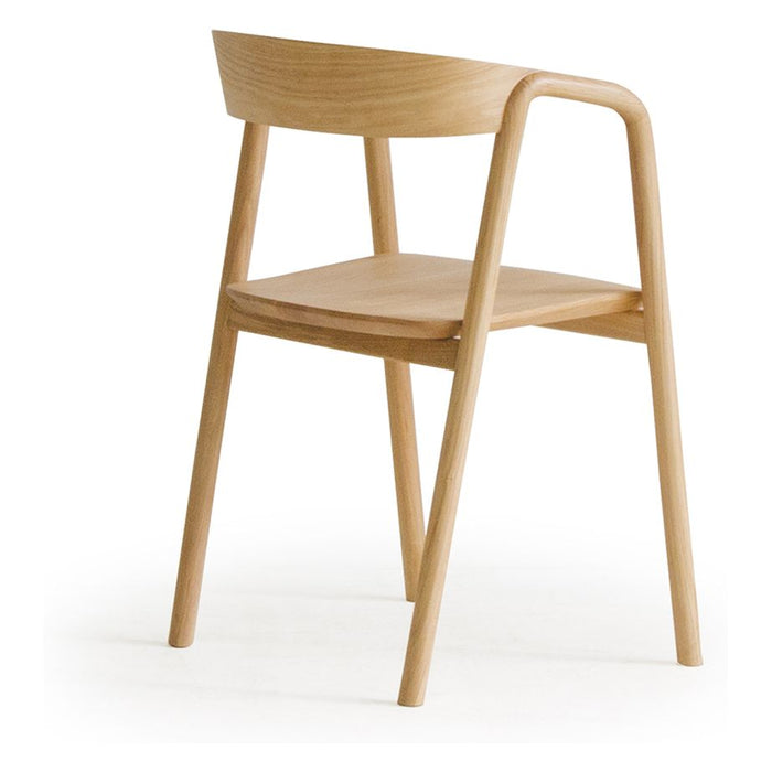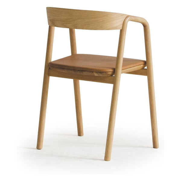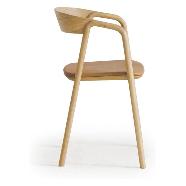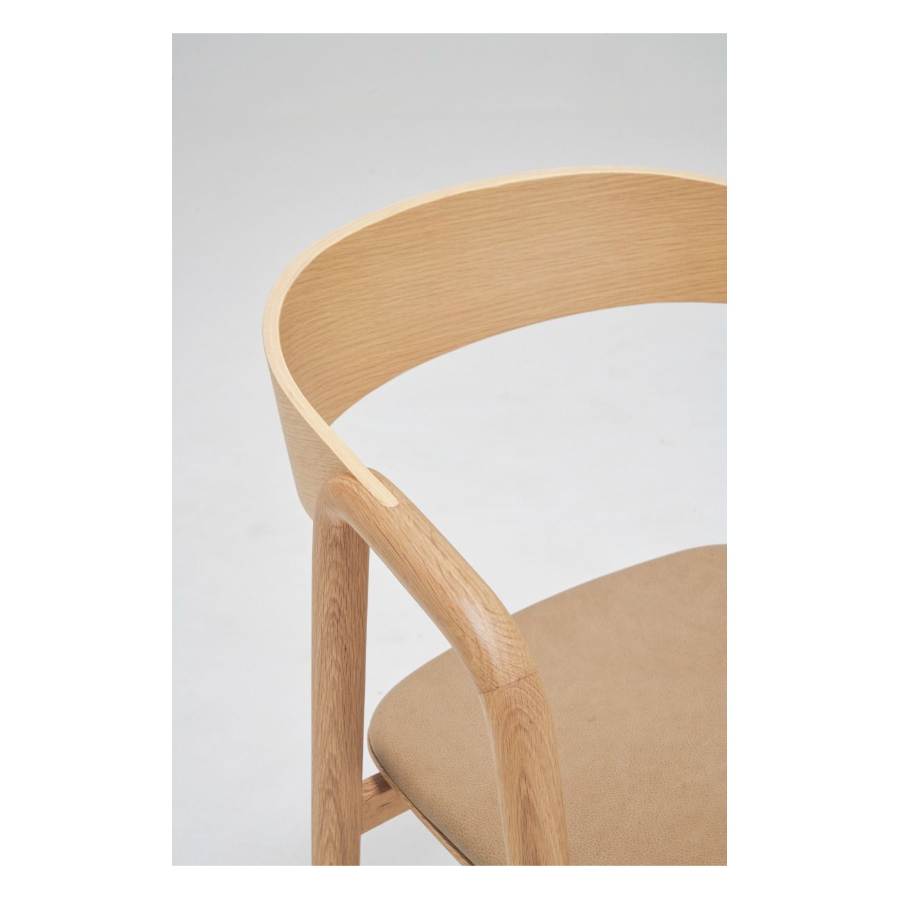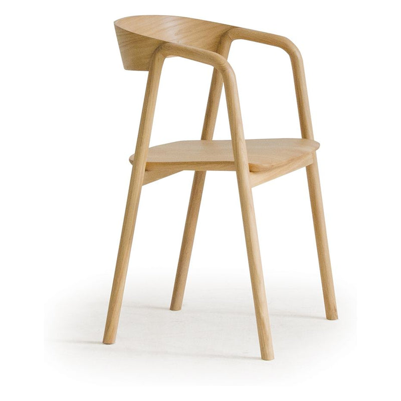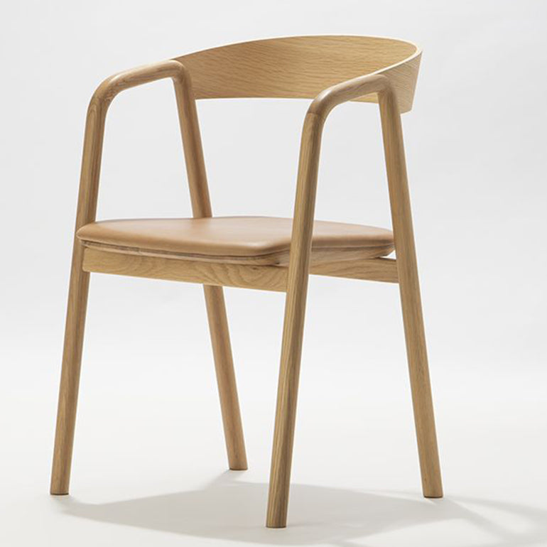 The design for Ryota Yokozeki’s Inlay chair comes from a desire to achieve new and challenging forms in wood while still showing respect for the material. Similar to an elegant letter form, the chair has a curving plywood backrest that merges seamlessly with the solid wood arms and frame. It’s available with an upholstered or wood seat.