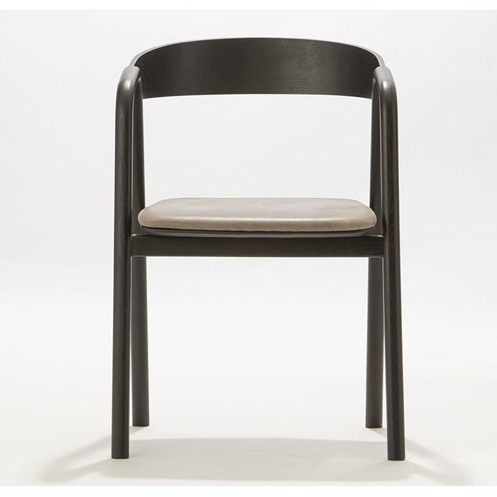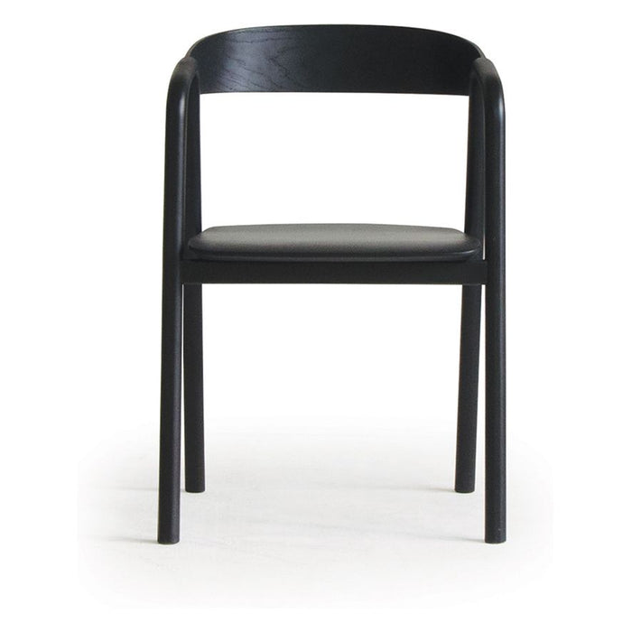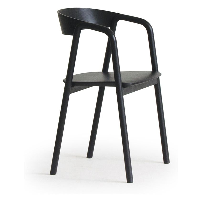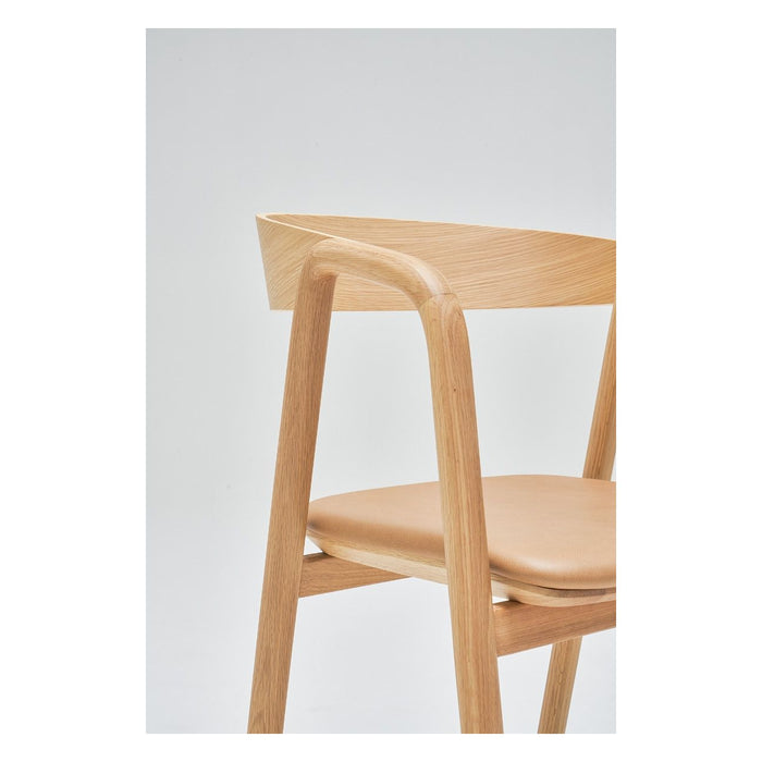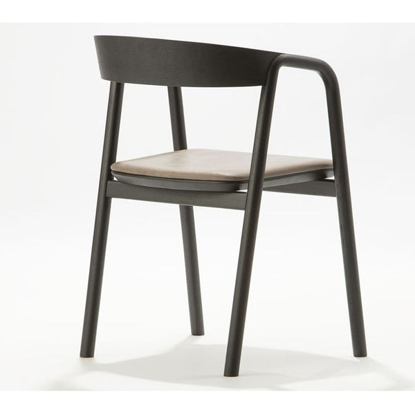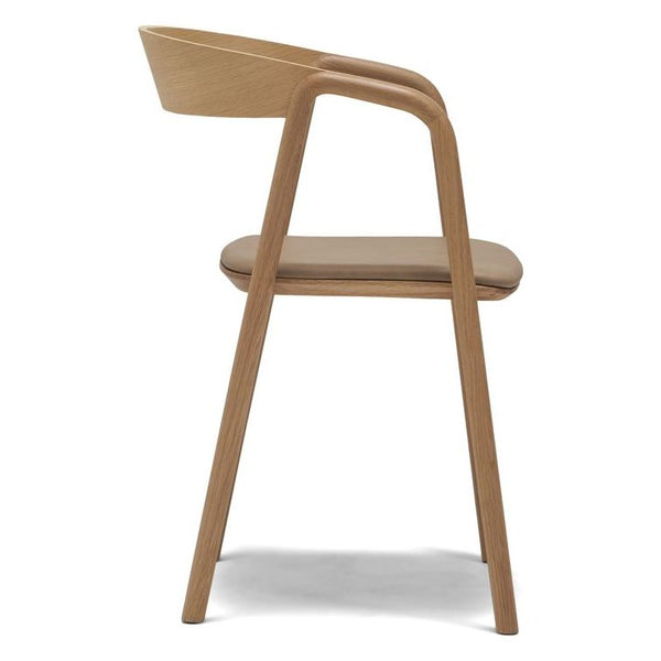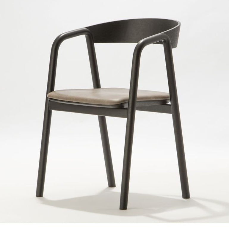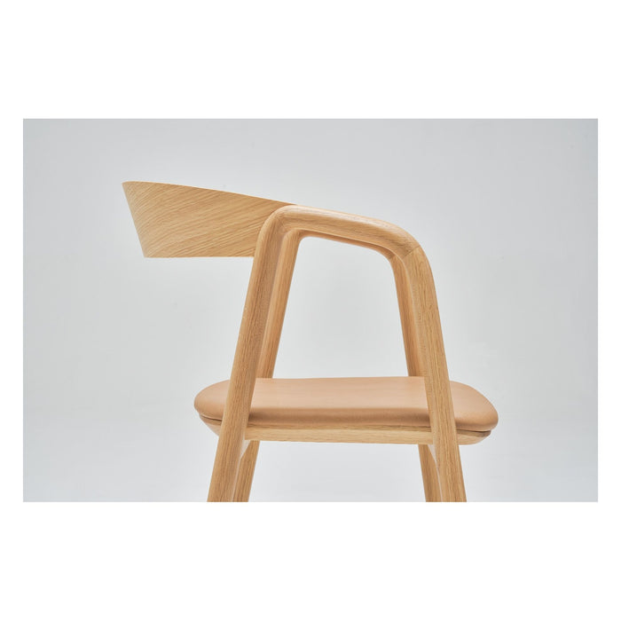 The design for Ryota Yokozeki’s Inlay chair comes from a desire to achieve new and challenging forms in wood while still showing respect for the material. Similar to an elegant letter form, the chair has a curving plywood backrest that merges seamlessly with the solid wood arms and frame. It’s available with an upholstered or wood seat.