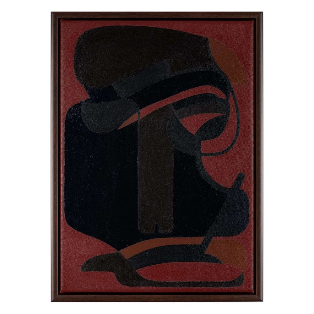 Sean Peters is a contemporary oil painter based in Australia. His first exhibition at Gaffa Gallery in 2018 was titled "The Becoming". Themes of movement and transformation are animated by intermediate biomorphic forms, suspended against a background of empty infinite space. Anatomical profiles are expressed with organic taut lines and non-uniform perforations, conveying fluidity and mass. An earthen palette of Midnight, Van Dyke Brown and Madder are inspired by the Australian outback before dawn. Animated Egyptian style male portrait with papyrus motif eyes. Use indirect light when considering placement of painting. Perfect size for small spaces and narrow walls.