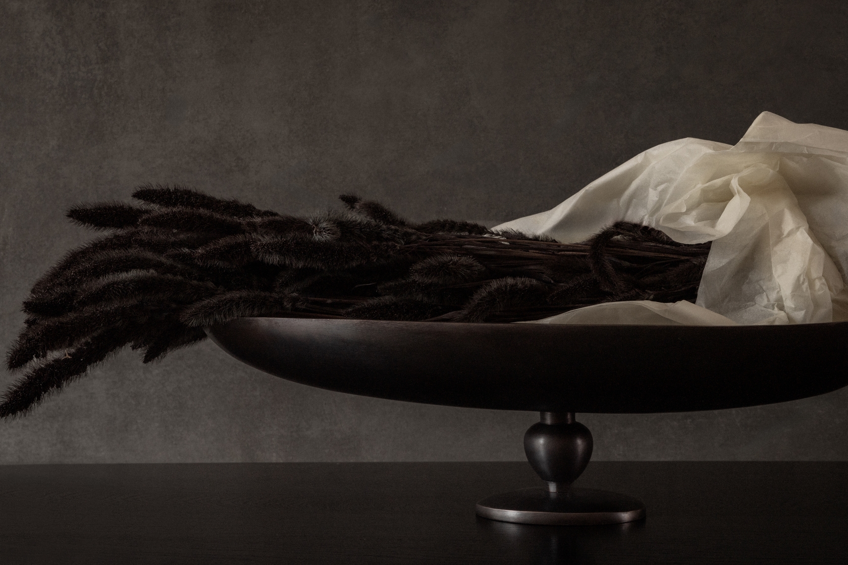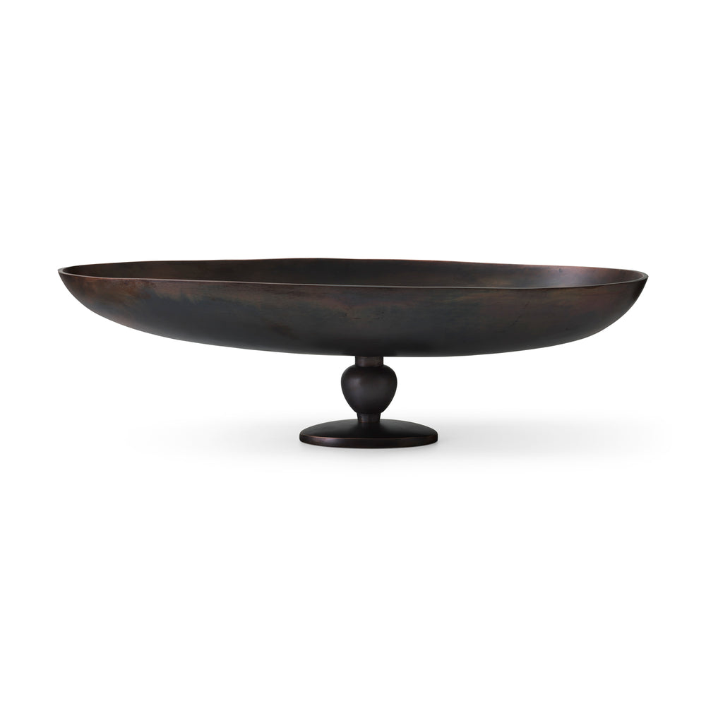 With a brown bronzed finish that adds a rich, vintage character, the Pavot Centerpiece blends modern minimalism with traditional charm. The design draws inspiration from the delicate form of a poppy seed head, subtly reflected in the shape of its footed base. Soft curves and an elongated silhouette evoke a sense of timeless elegance. As a decorative object or catch-all vessel for everyday objects, its sculptural form makes it a striking focal point for any surface.
