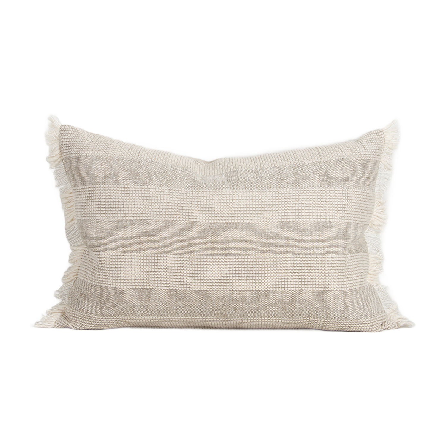 Add understated texture and warmth to your space with this beautifully crafted lumbar cushion. In a soft natural tone, the Carson’s woven stripe design and fringed edges offer a relaxed yet refined feel - perfect for layering with tonal neutrals or contrasting deeper hues. Made from a linen-blend front and pure cotton back, the natural palette and subtle surface details create an elegant coastal aesthetic.