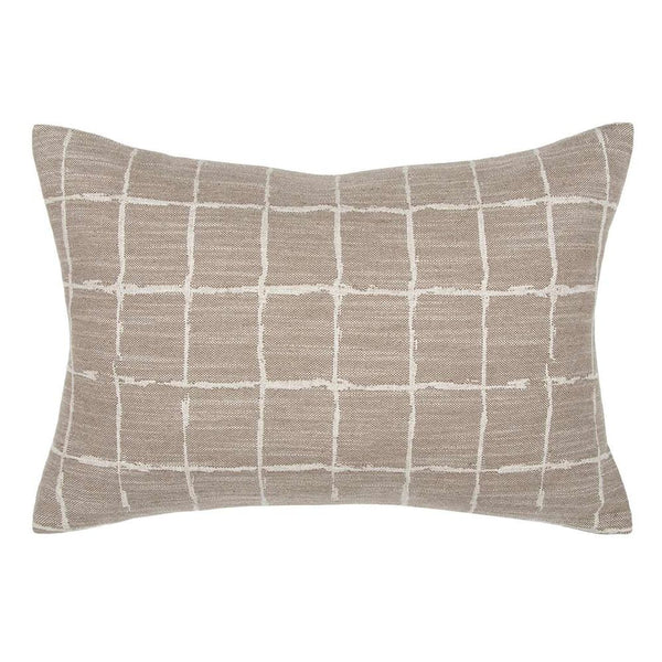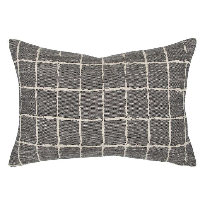 In a warm take on monochrome, classic country style is reinterpreted with a refined and elegant aesthetic. Featuring a ragged grid design in finely woven reverse fabric, the Johnson cushion’s lumbar shape in an ecru and black palette creates a composed and considered space for living. Style with sister cushion Harrison-Black, and Flaxmill-Doeskin and Adler-Dark Chocolate cushions.