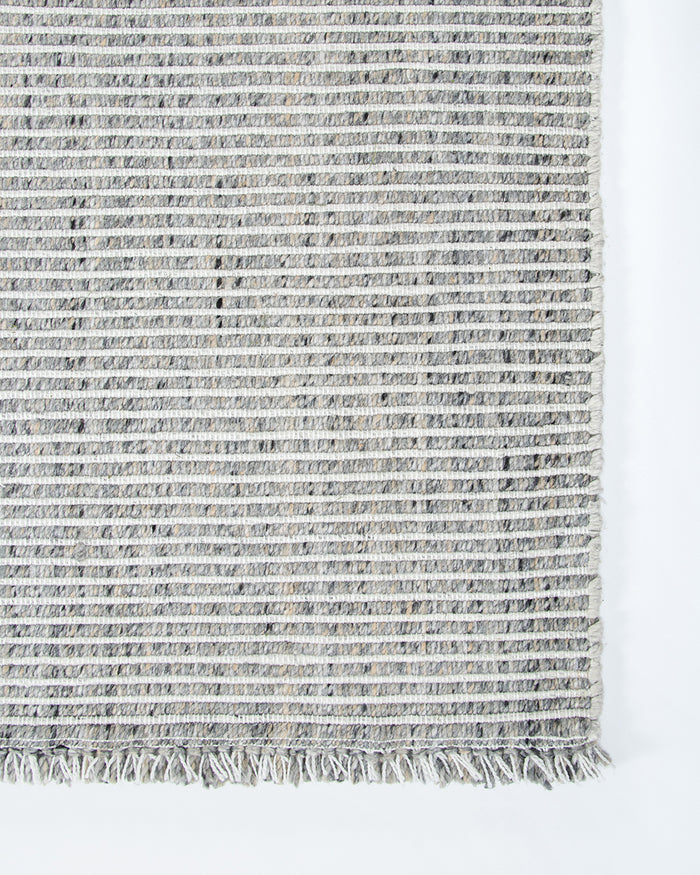 Soft underfoot, the understated design of the Rhodes is ideal for laid-back living spaces. Handwoven in mottled slate and almond tones, the low-profile design is finished with a casual, hand-knotted fringe. The durable nature of this rug makes it suitable for outdoors, high-traffic areas or under dining tables. This floor rug is crafted using soft, recycled PET yarn, a resilient fibre made from recycled plastic bottles. 759 plastic bottles were saved from landfill to create this piece. Due to the absorbent nature of PET yarn, we recommend this rug is used undercover, stored during wet weather, and the use of RugMaster Underlay, to reduce underfoot slipping.