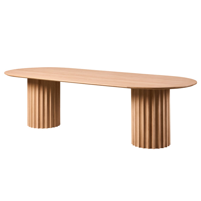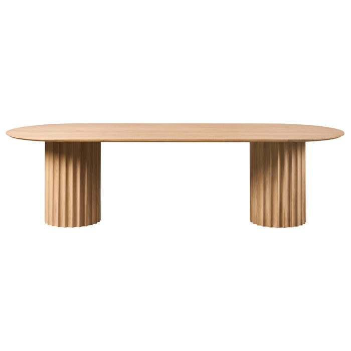 The Orsen Dining Table is perfect for modern and contemporary dining experiences. Crafted from sturdy wood with a sleek pillar design, it is both stylish and durable. Its high-quality construction ensures it can survive everyday wear and tear. Enjoy a comfortable dining experience with the Orsen and with its sleek and modern silhouette, it will upgrade any dining space. There are also adjustable feet so you can easily level it to the height you want.
