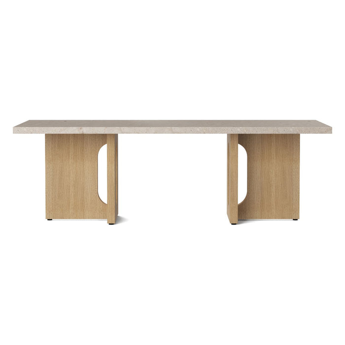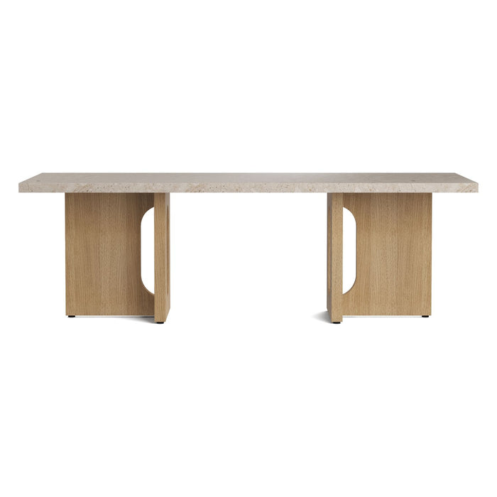 Originally developed by Norwegian architect and designer Danielle Siggerud as a modern and versatile table for MENU’s former showroom café, the Androgyne Collection profiles simple silhouettes and refined materials. Celebrating craftsmanship and wood, the Androgyne Lounge Table is versioned in natural or dark stained oak or walnut, as well as with the option of a kunis breccia stone or calacatta viola marble tabletop. With a shape and function made for everyday settings, the versatile, modernist design makes it possible to use as both a lounge table or bench for piles of books or statement decorations.