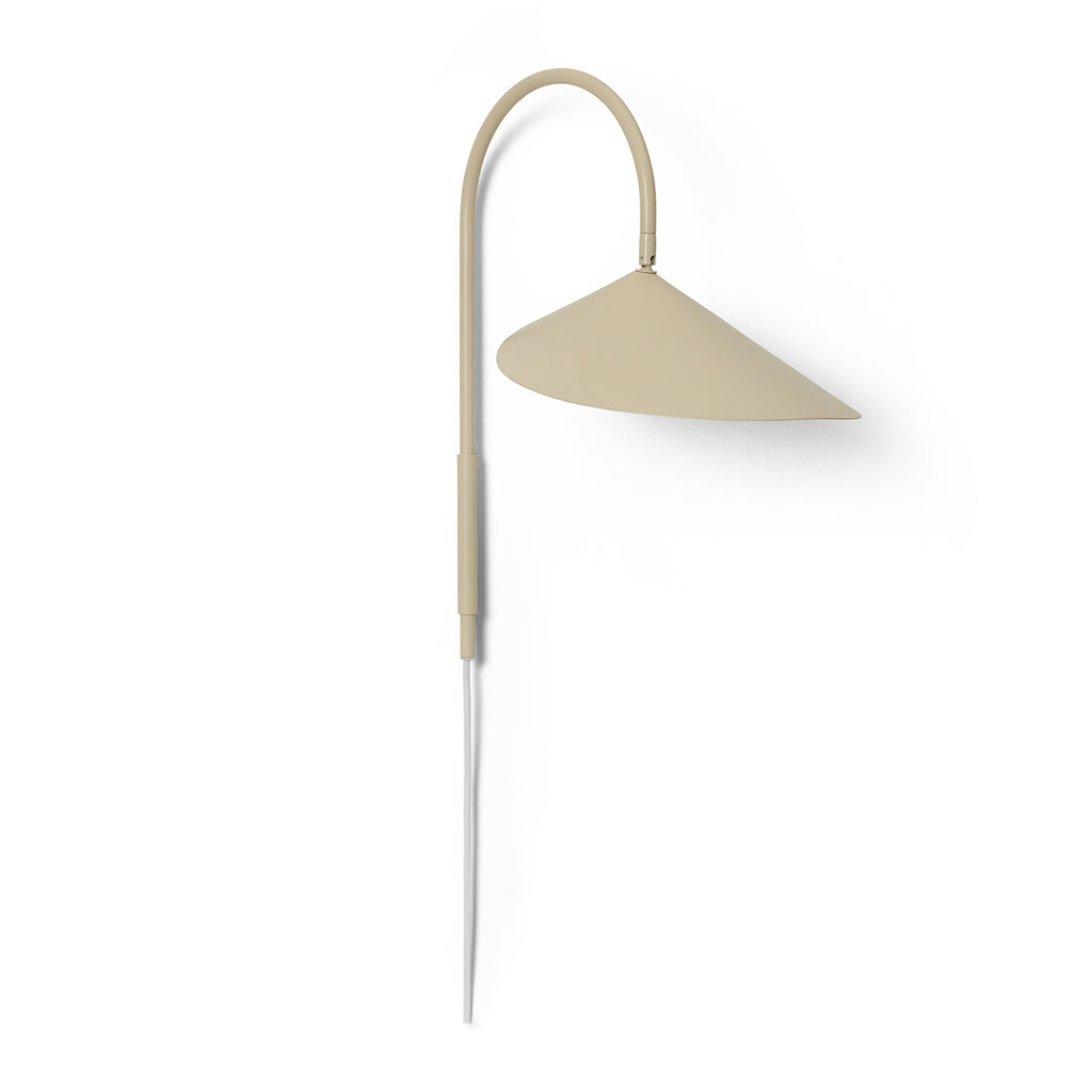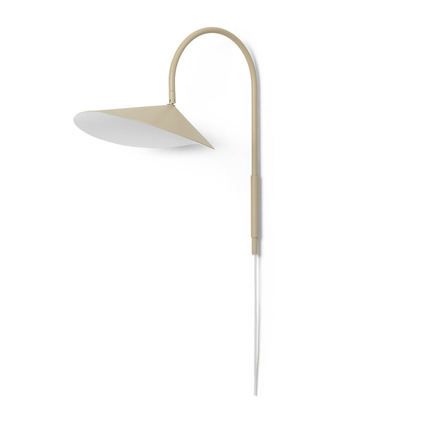 The Arum Swivel Wall Lamp is characterised by an organic shape that is elegantly suspended from a curved metal arch in a leaf-like manner. With the matte, off-white inside of the shade, the lamp provides a soft, evenly distributed light. The arm of the lamp includes a swivel mount, allowing the lamp to turn in all directions, ensuring that the Arum Swivel Wall Lamp will provide optimal light in every situation. The lamp includes a fabric cord with a switch and comes with a wall bracket, making it is easy to mount the Arum Swivel Wall Lamp on your desired wall.