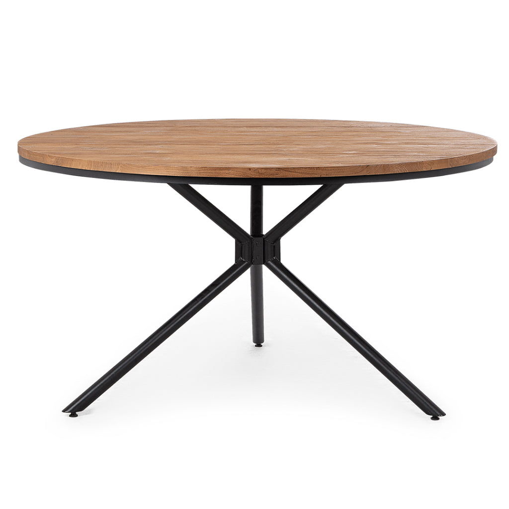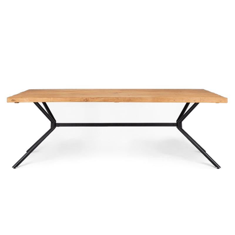 The Oxo Rectangular Dining Table is crafted from high-quality reclaimed wooden slats, sourced from old Javanese houses. The contrast of the round rustic and grainy wooden table top with the elegantly designed black iron frame makes the table easy to combine with various interior styles.