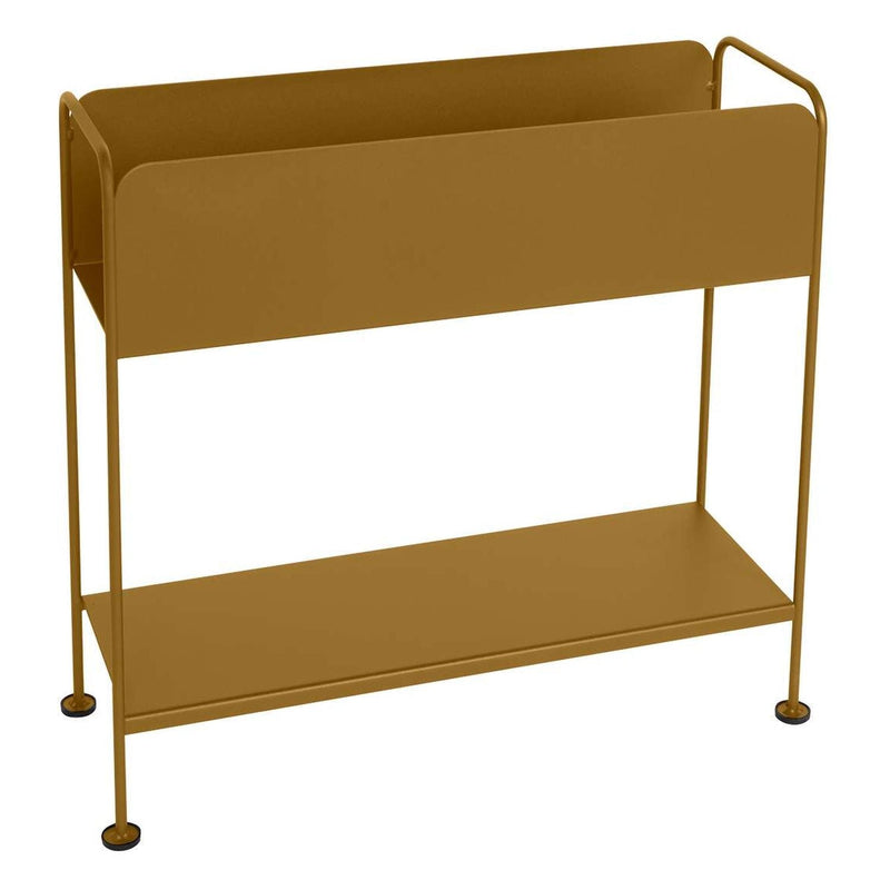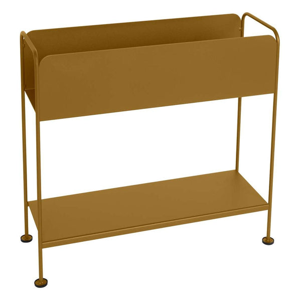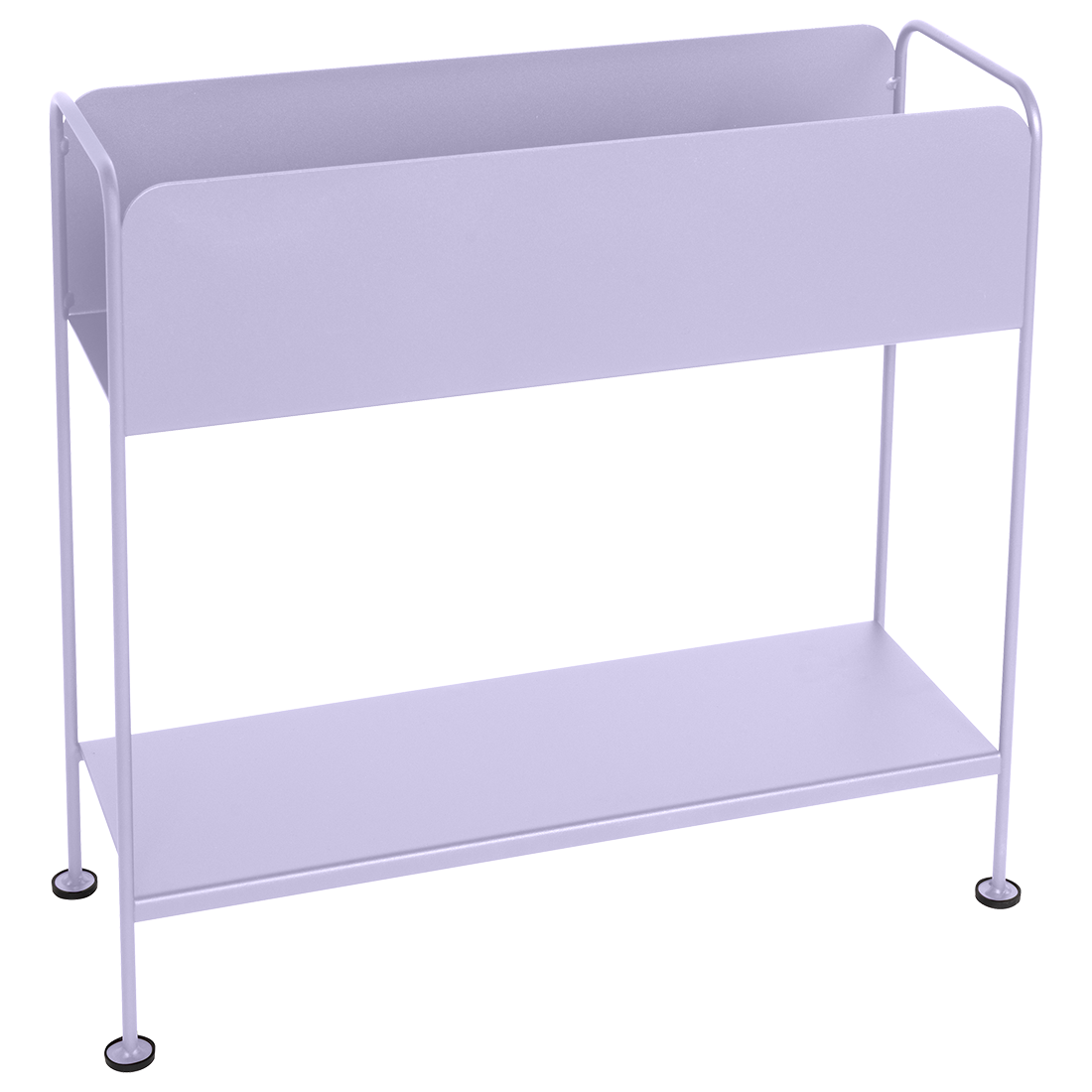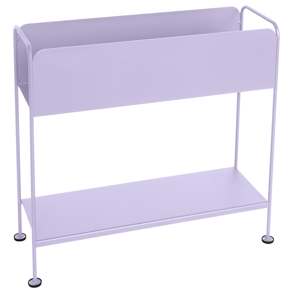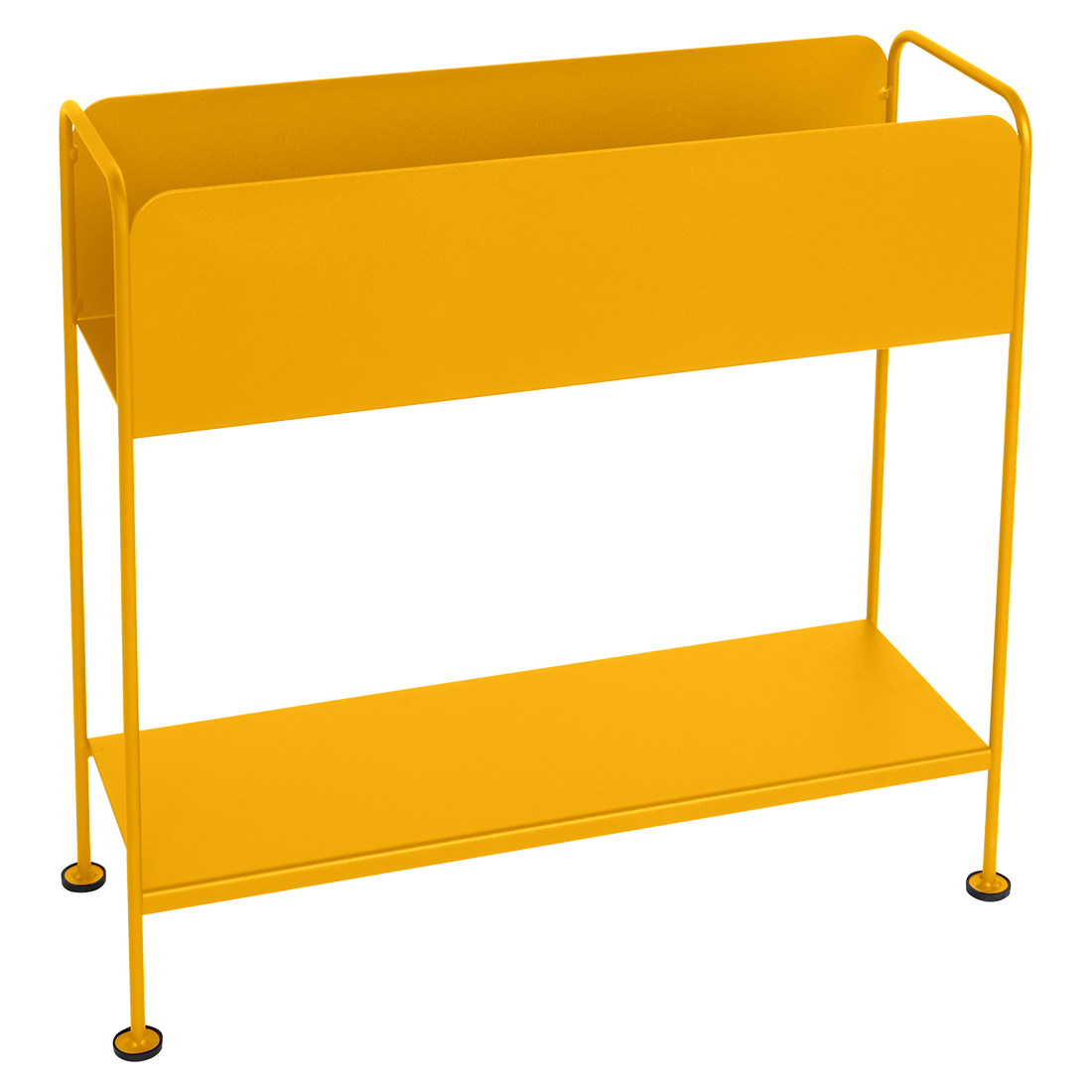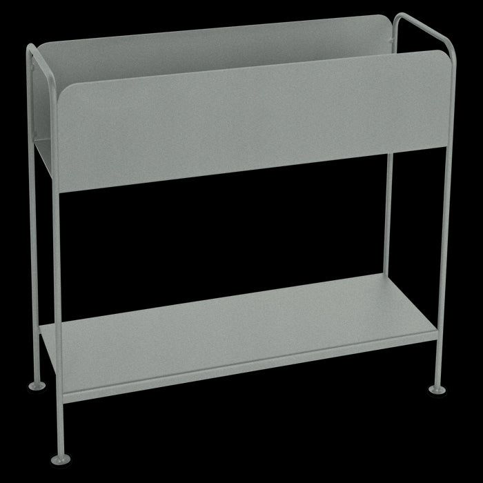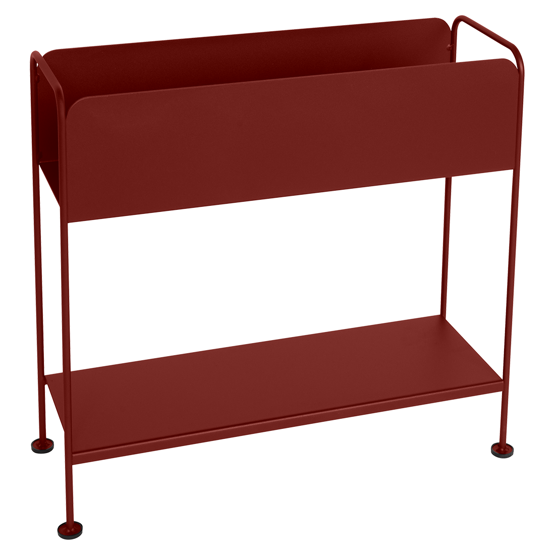 "Whoever said that an item couldn’t be both useful and pleasant was gravely mistaken! At Fermob, we strive to make products that are always functionally aesthetic. Within the large range of side furniture, we present to you the Picolino plant holder: a small, light, handy and versatile item. It is designed to facilitate your indoor and outdoor life, and always with the utmost style! Fair warning: this item is an absolute must-have! As usual, the Fermob Studio intends to seduce us with the Picolino plant holder. This metal shelf is composed of a sheet steel storage tray and a shelf mounted on a steel wire structure. It would be rash to qualify this item as your every-day plant holder on a stand. With its practical “U”-shaped storage tray and shelf, it offers unparalleled versatility. It can be used as a magazine rack or a bottle holder, or can even be transformed as an occasional bookcase, a side bar or a decorative shelf. We look forward to seeing all the creative ways you will use it! The simplicity of the folded metal sheet as well as the precise bending of the wire give the entire structure a truly contemporary feel. The thin lines produced by the wire structure offer an extremely lightweight design. The result? The Picolino plant holder can be effortlessly transported from outdoor to indoor spaces whenever you’d like.
