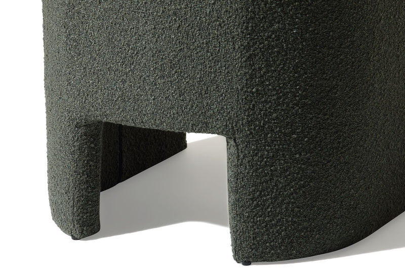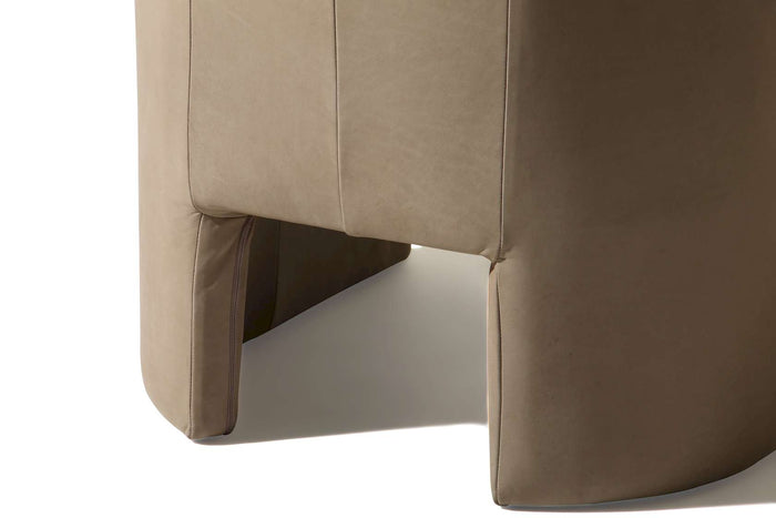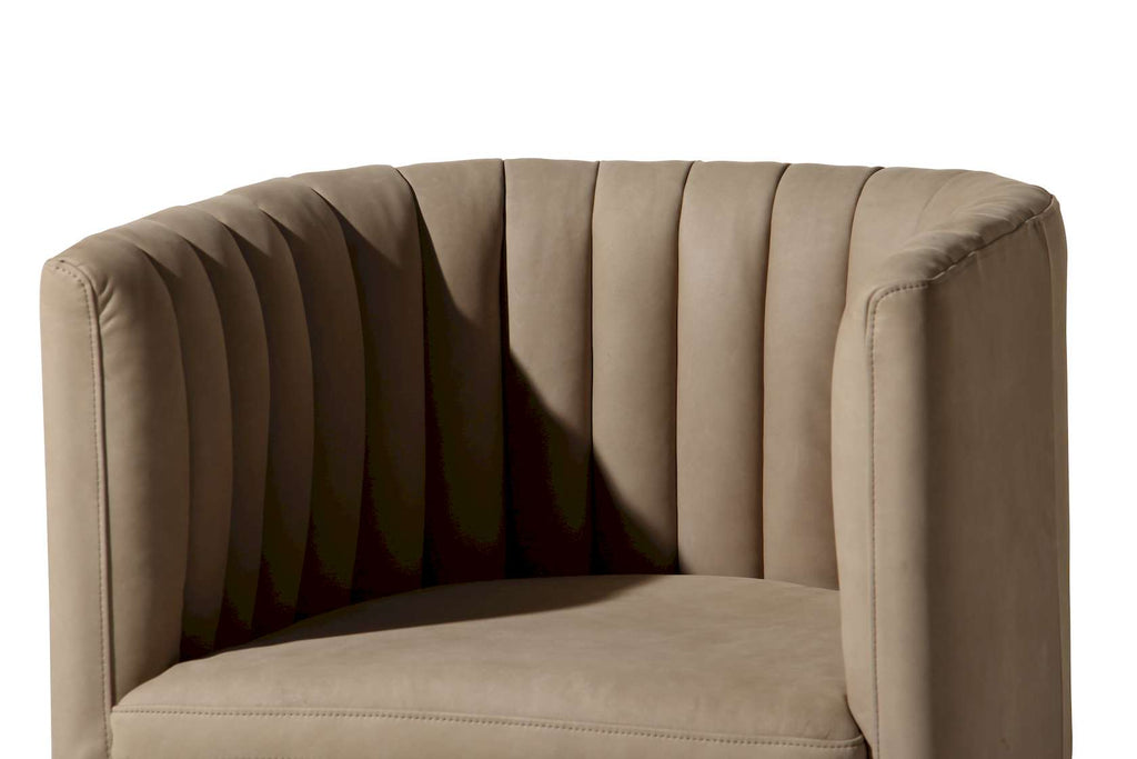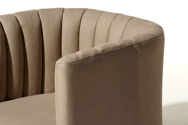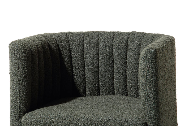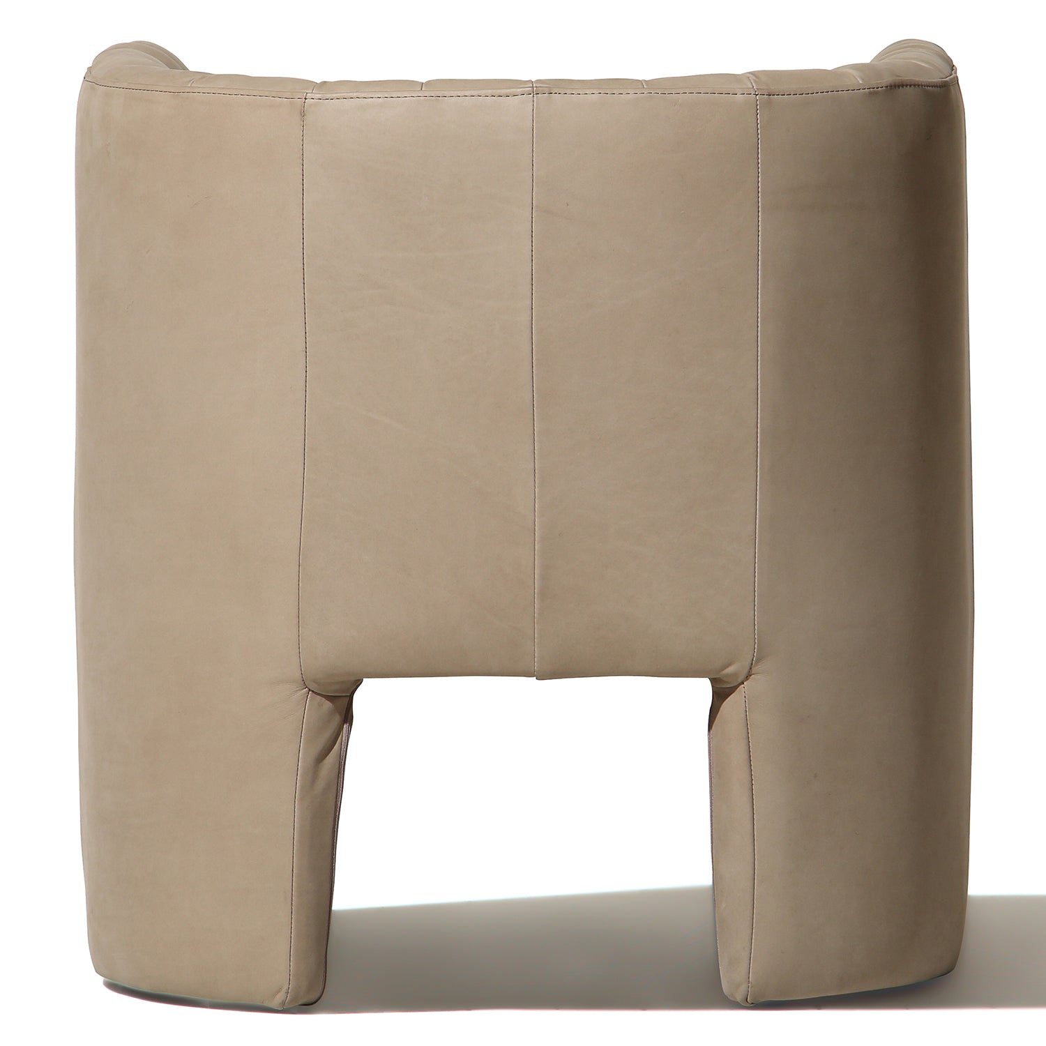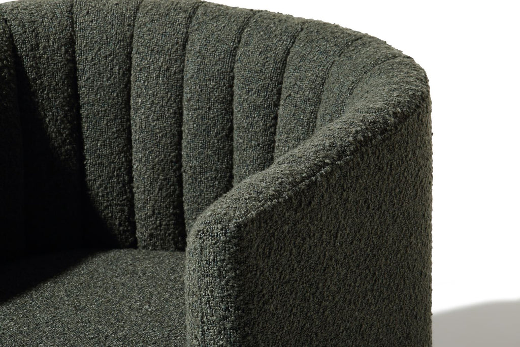 Full bodied leather or boucle occasional chair with channel detailing and soft foam seat base. Carefully put together, this chair is a plush and sophisticated design that adds a touch of strong textural interest to your home.