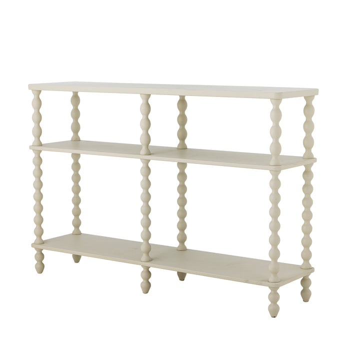The Salino Console Table by Bloomingville is a charming piece of furniture made of rubberwood, designed with a delicate look. The smooth surface and off-white color create a harmonious and inviting atmosphere. This console table is ideal for the bedroom, living room, or entryway and also works as a lovely detail in a child’s room.