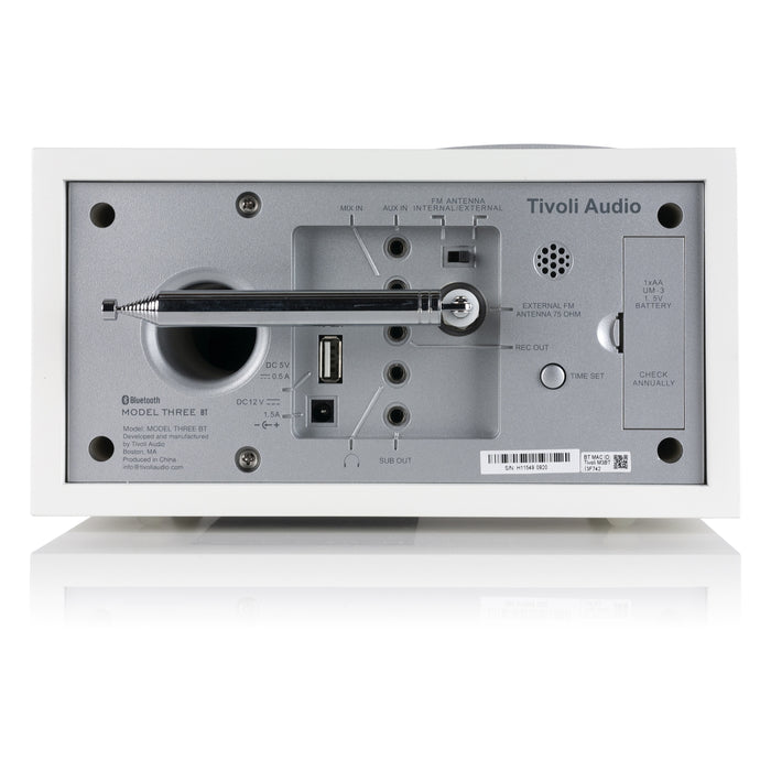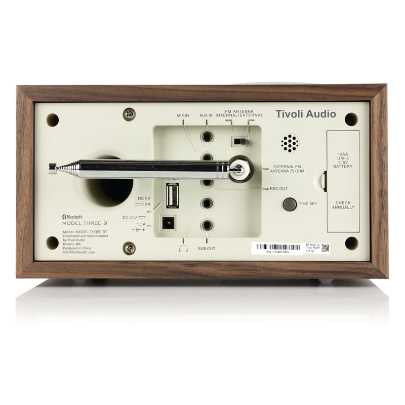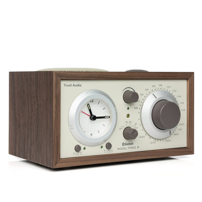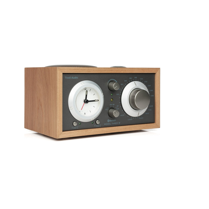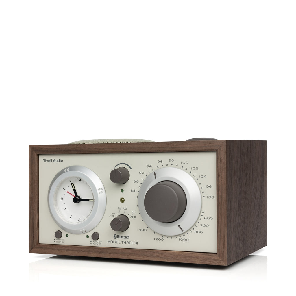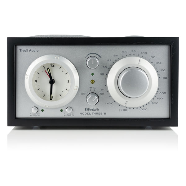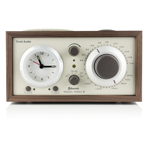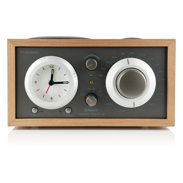 The Model Three BT brings all the style and sound of the analog driven Model One perfectly into the bedroom with the addition of a classic analog clock. The clock was designed for easy setup and use, which is lightly illuminated, so you can see it at night.