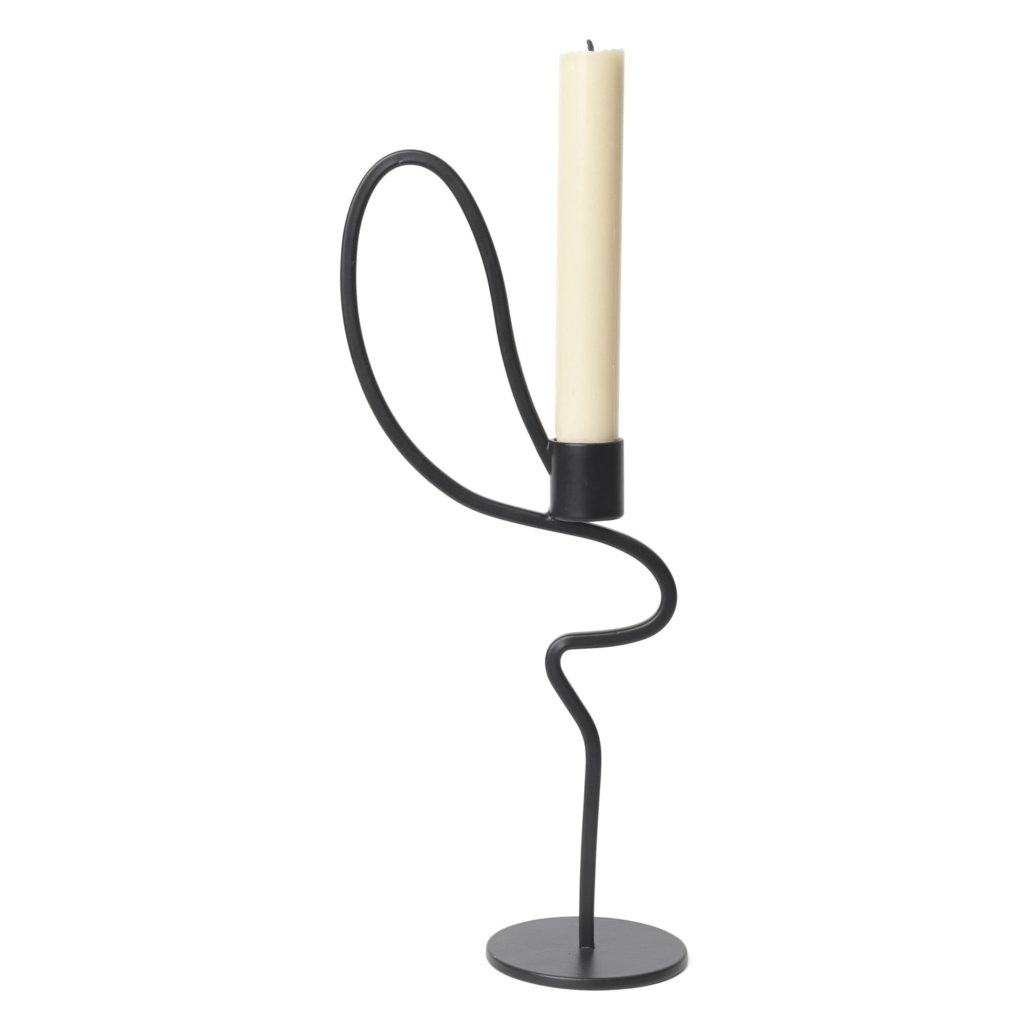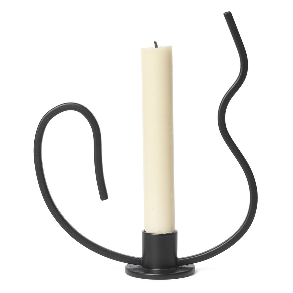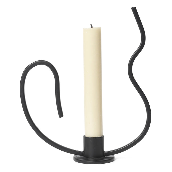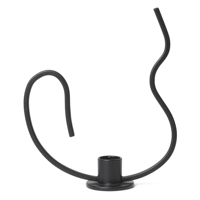 As if frozen mid-dance, the Valse Candle Holder has a fluid and wavy form. Taking inspiration from the graceful movements of the Waltz dance, this piece is crafted from powder-coated iron and has an elegant shape, featuring a curved metal rod that invites you to hold and move the candle holder around with you.