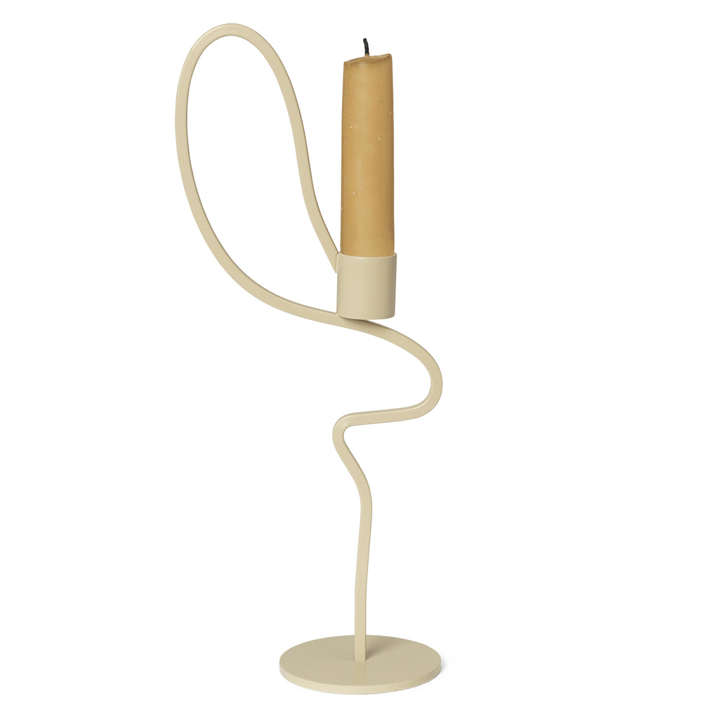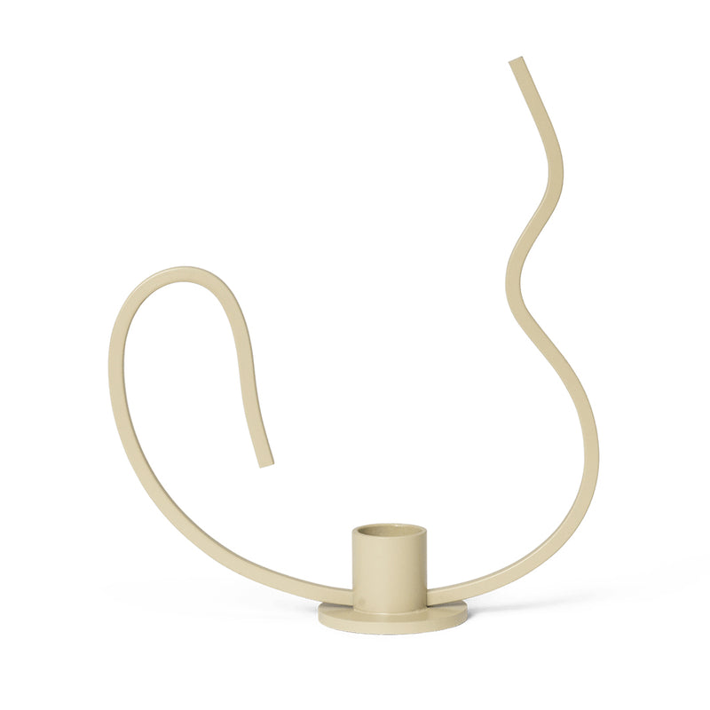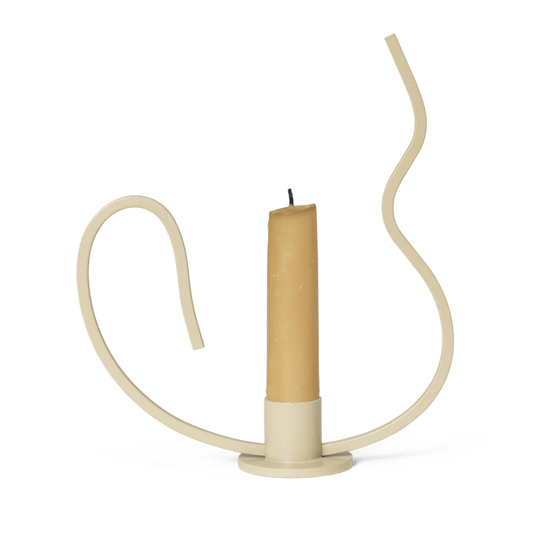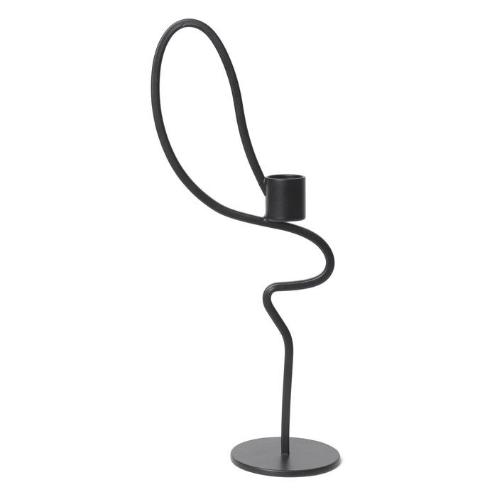 As if frozen mid-dance, the Valse Candle Holder has a fluid and wavy form. Taking inspiration from the graceful movements of the Waltz dance, this piece is crafted from powder-coated iron and has an elegant shape, featuring a curved metal rod that invites you to hold and move the candle holder around with you.