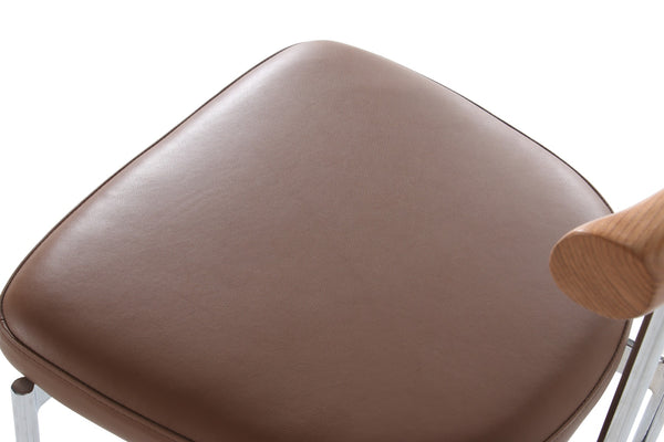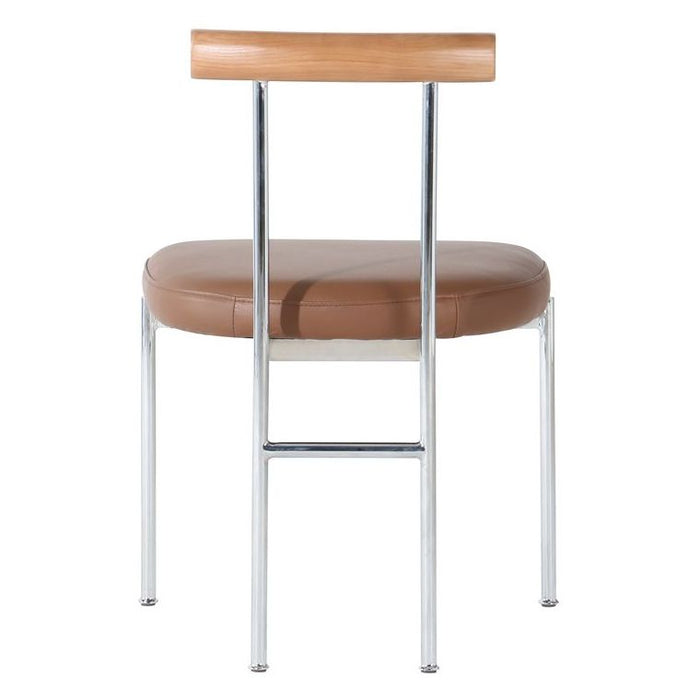 Chair was designed to replicate the origins of its table peers,the wooden back rest represents a fallen log. Chair is completed with a twin leg back panel to match the dining table.