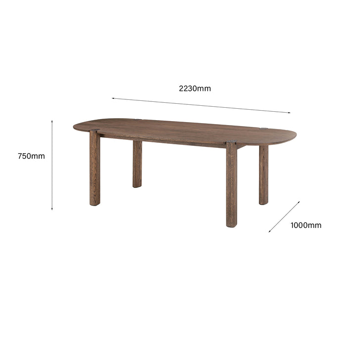 The Tovi Dining Table balances softness and strength, with its oval top and rounded legs forming a grounded yet inviting silhouette. Crafted from solid timber, it highlights the warmth and texture of natural grain, revealing the quiet craftsmanship in every curve and joint. A timeless piece that anchors everyday gatherings with ease and quiet elegance.