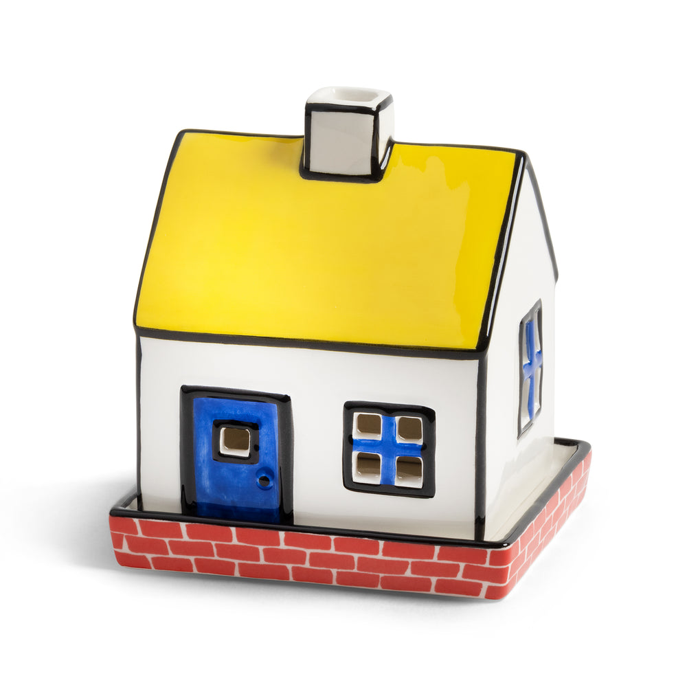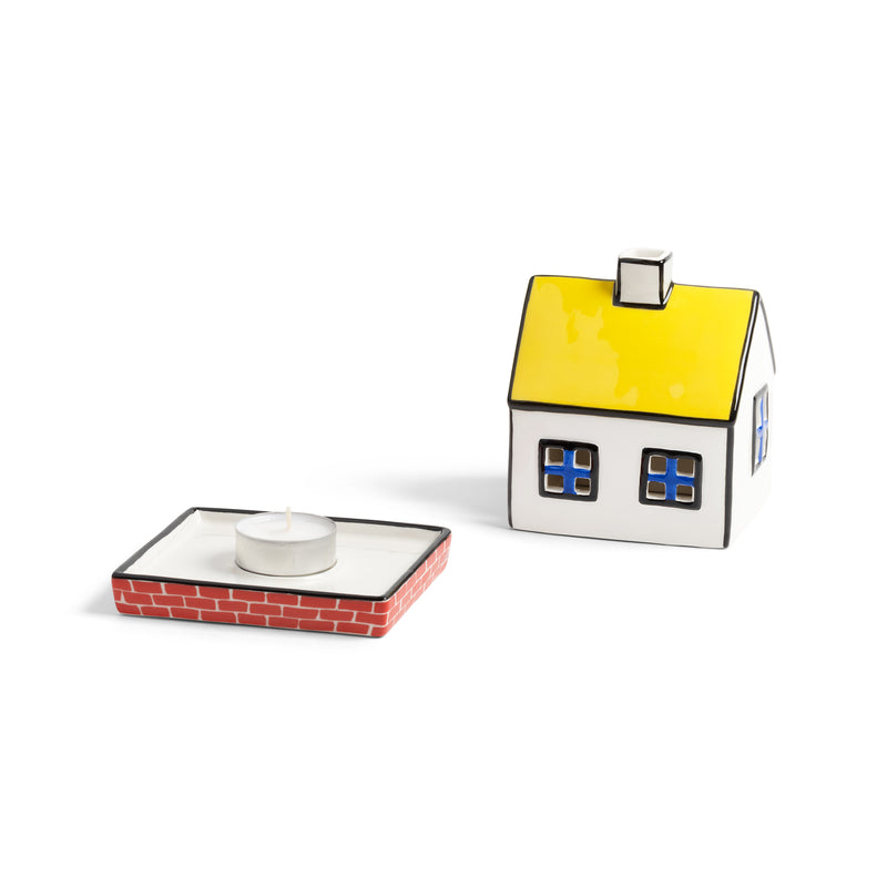 In collaboration with English ceramicist and illustrator Hal Haines, this set of hand-painted tealights brings narrative charm to your interior. Inspired by classic English table settings and Hal’s distinctive visual storytelling, each ceramic piece features bold details and a playful design. Combine multiple tealights and candle holders to build your own whimsical candlelit village. The tealight consists of two parts, a base and a decorative lid, creating a glowing moment when lit. Carefully packed in &klevering’s special edition box featuring Haines’ artwork. Each house is hand-painted and can therefore vary from house to house, which gives the house character. Note: Ceramic can become very hot. Always use on a heat-resistant surface, avoid touching or moving while in use, and lift the lid carefully from the sides. For added safety, we recommend using an LED tealight."