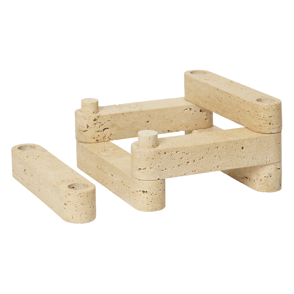 The Newel Modular Candle Holder Set draws inspiration from the architectural language of Can Lis, where brickwork serves as both structure and a distinctive signature. Comprising six units, the set references the modularity and adaptability of bricks, inviting users to create varied compositions. These sculptural candle holders invite a sense of warmth and architectural refinement into living spaces.
