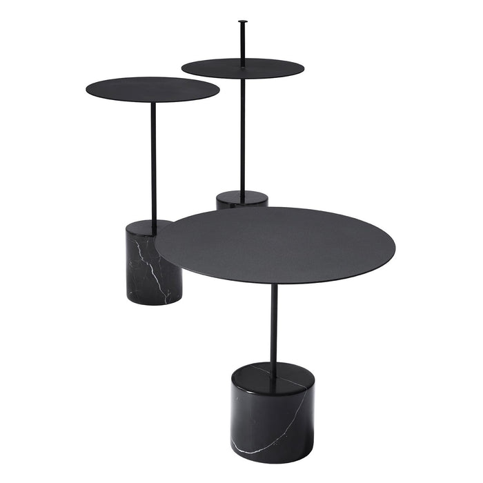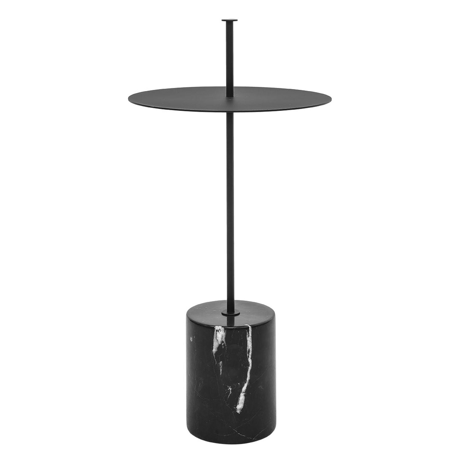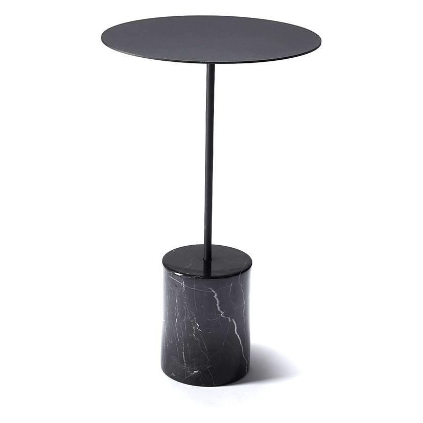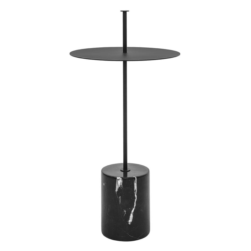 Designed by Berlin-based studio Böttcher & Kayser, the Calibre Side Table is defined by a streamlined silhouette of clean lines and geometric clarity. Offered in two versions - high and low - the series combines a cylindrical marble base with a slim, powder-coated steel frame, balancing stability with visual lightness.