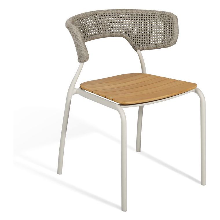 This dining concept offers superior comfort and unique details that set the scene for special moments with friends, family or some peaceful moments alone. The dining chair has a unique aluminium frame, with a teak seat and a handwoven back made of high-quality rope with a soft yet durable surface. Comes in two colour options and is designed by Thomas E.Alken.