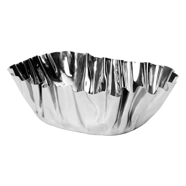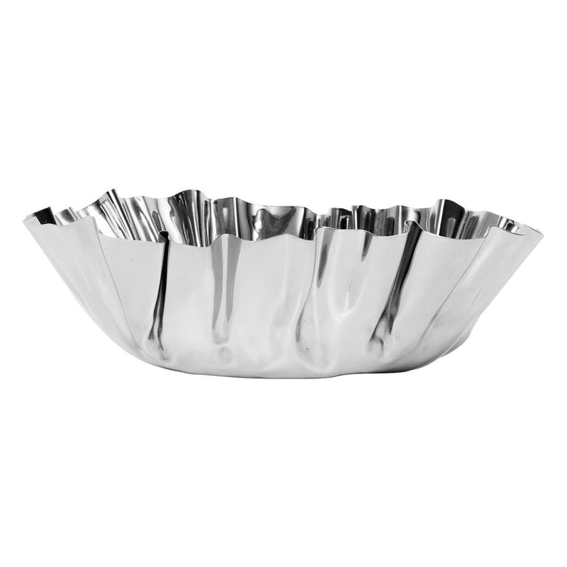 The Tydra Bowl is crafted from mirror-polished stainless steel, catching the light with every curve. Its rippled silhouette recalls the movement of waves, bringing a sense of flow to the table. Both functional and sculptural, the bowl is suitable for use as a fruit bowl, serving vessel, or standalone sculptural object.