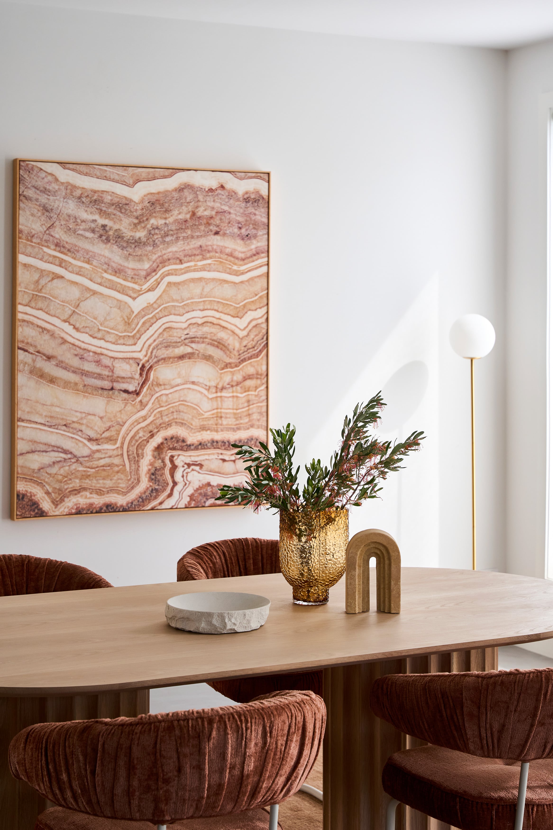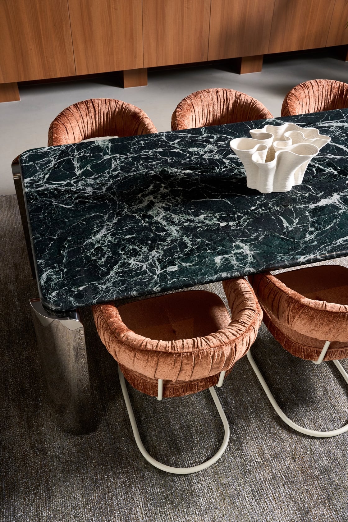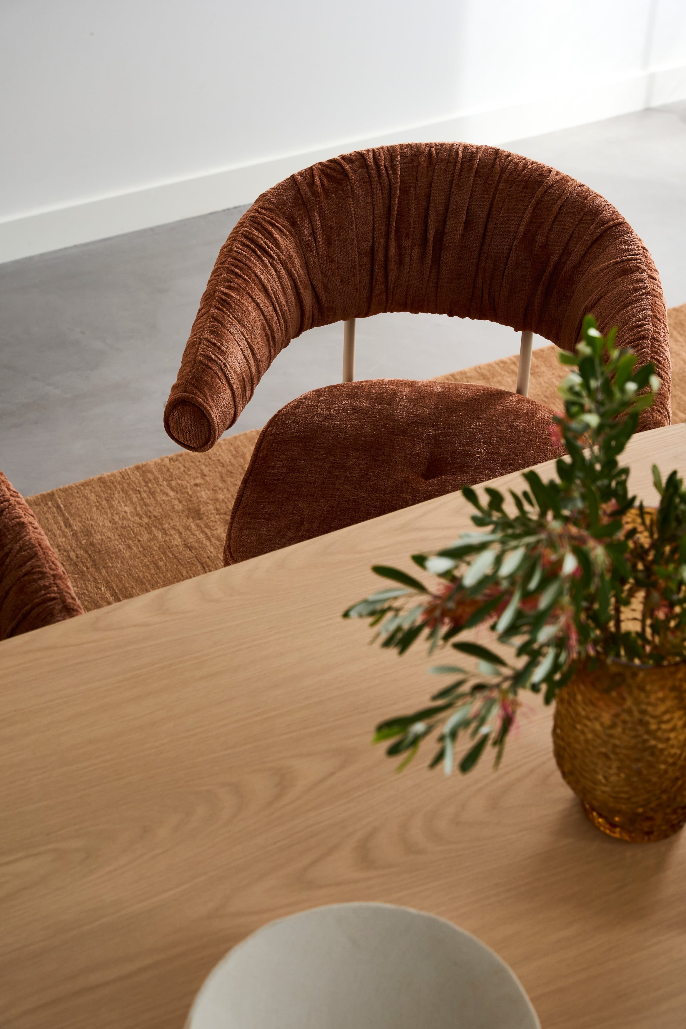 Experience the extraordinary comfort of the Carrie Arm Chair. This modern dining chair features plush backrest and an ergonomic design that provides superior back support. With its chic style and fabric upholstery, you'll make a bold statement in any dining space. Enjoy utmost comfort and sophistication with the Carrie Arm Chair.
