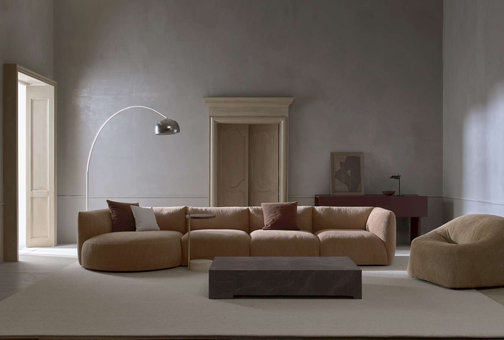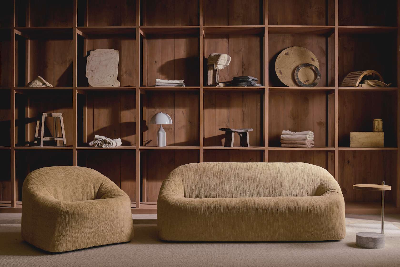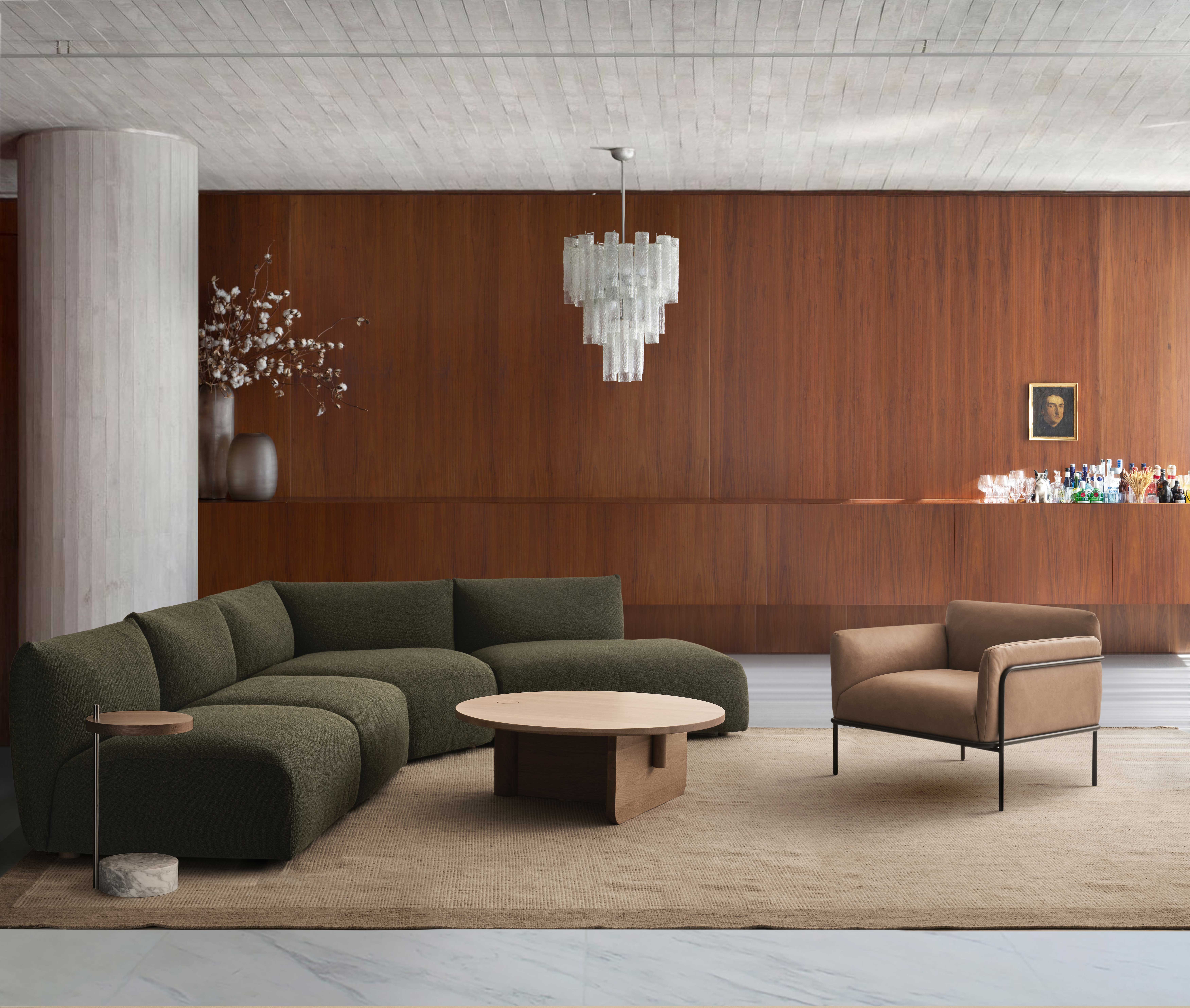 Comprised solely of cylindrical shapes of three different materials, the Society table has a clean and natural appeal, with nothing to disturb the eye.  This allows the beauty of the materials themselves to shine through, with the highlight being how each material complements the others.