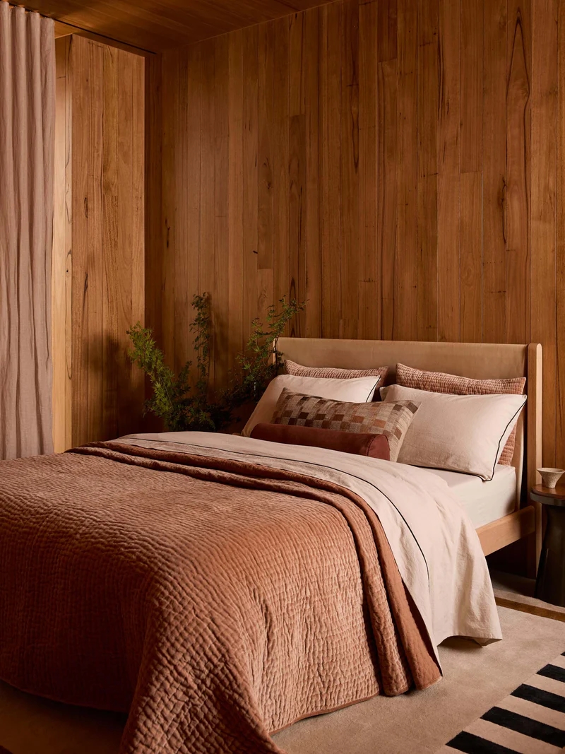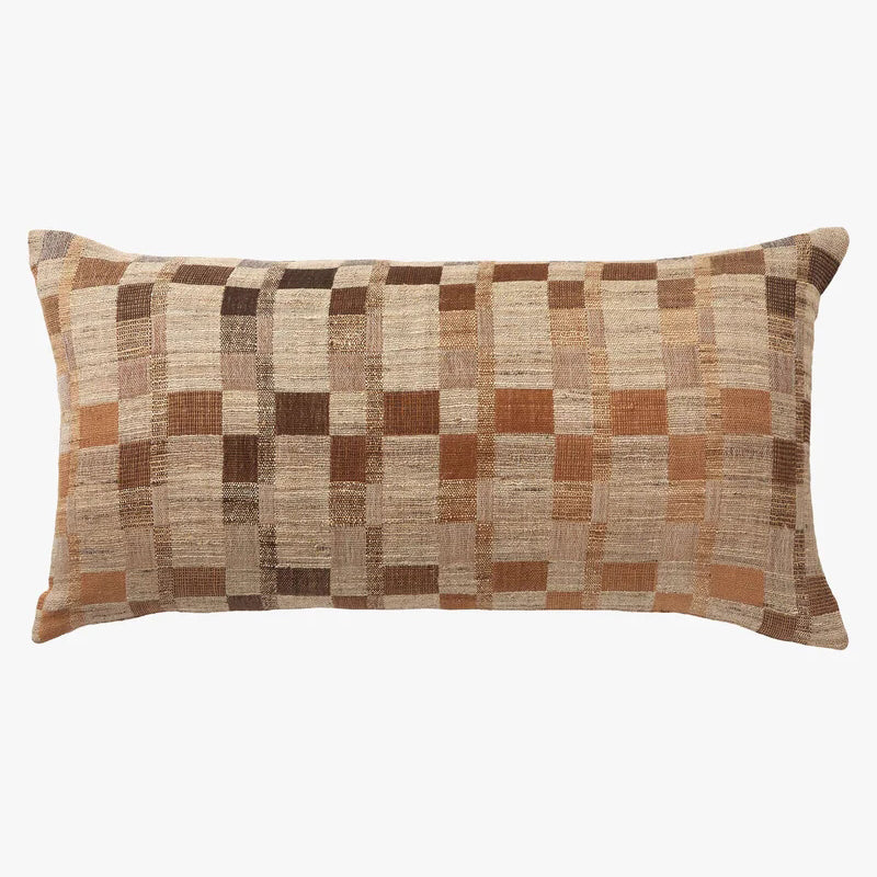 The statement, hand-loomed August Lumbar Cushion adds style to any space with its warm, neutral tones and gentle chequered print. A testament to craftsmanship and design, each individual item is hand woven by artisans in India using ancient techniques.
