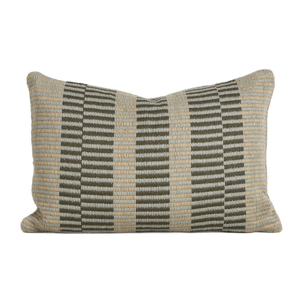 "Bring your interior style outdoors with the artisan quality of the Sol cushion. Intricately handwoven in sage and mangrove tones, the offset linear design adds a striking focal point to exterior settings. Both functional and beautiful, this durable lumbar works just as well styled indoors, especially in areas exposed to sunlight. Pair with complementary mangrove and eucalyptus tones to emphasise the design and colour palette.
