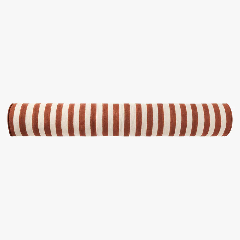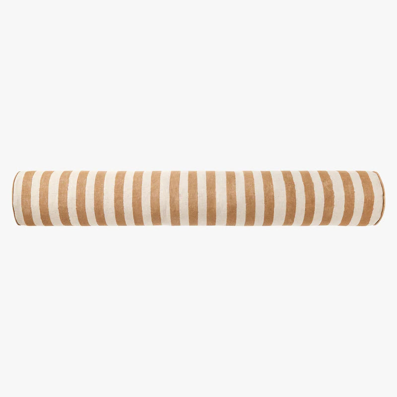 Make a style statement with this bold yet minimalist long bolster cushion. The painterly hand block printed stripe on linen is the perfect way to add a touch of visual impact to the room while reflecting a European aesthetic grounded in effortless appeal.