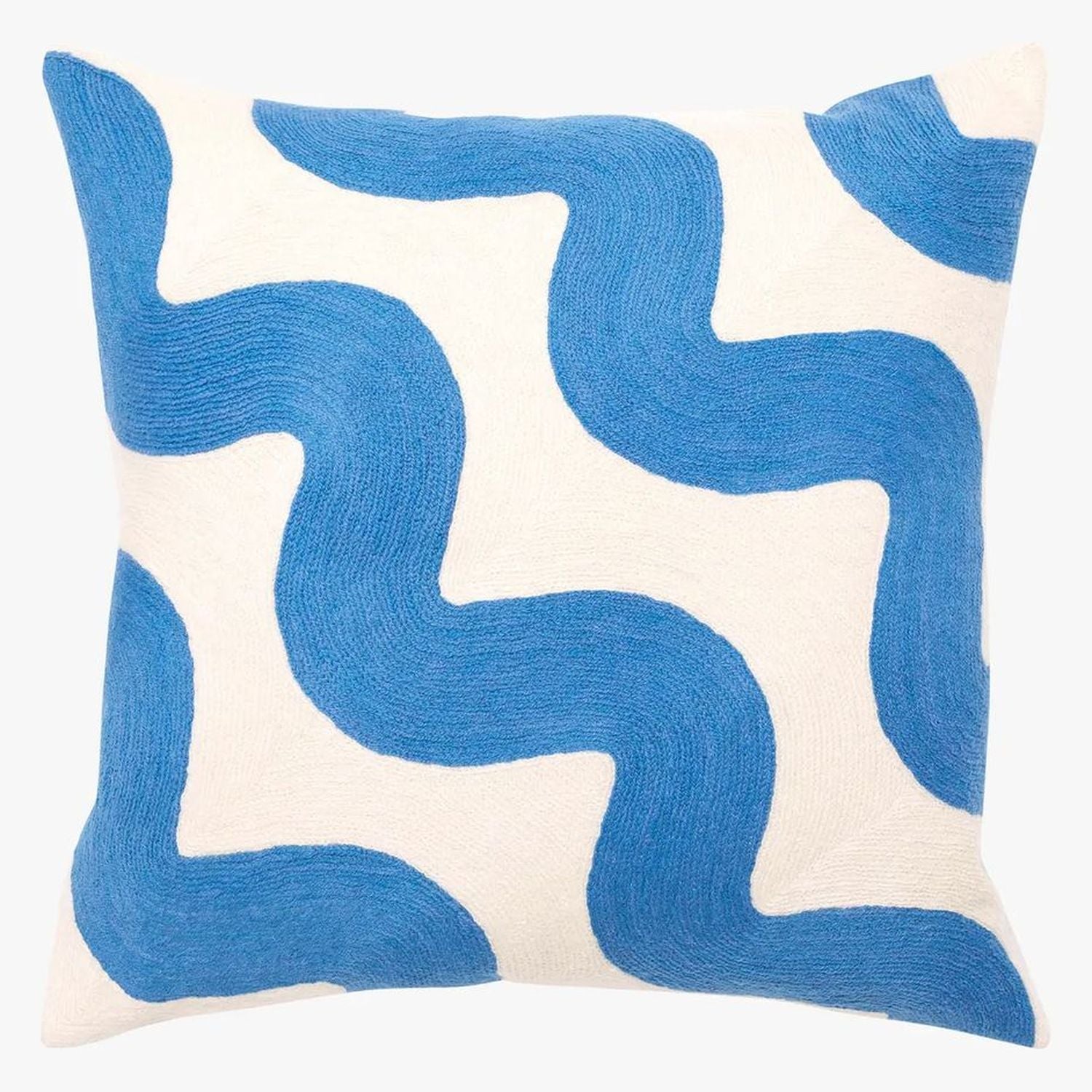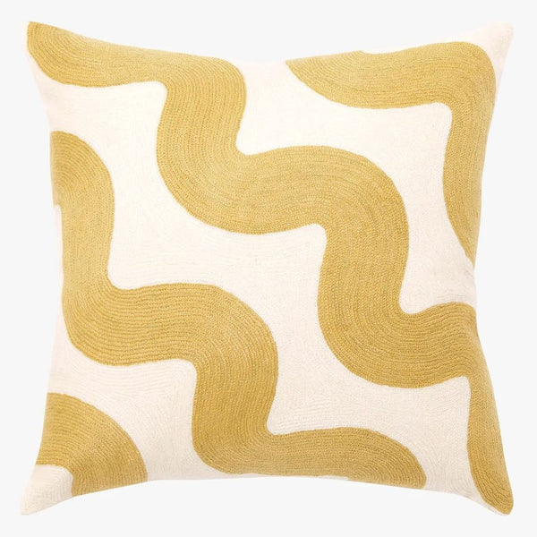 Designed in our Melbourne studio, the Wiggle cushion features a playful statement design made with a traditional hand embroidered chainstitch technique. Chainstitch embroidery is a traditional Kashmiri handicraft and important to the local economy. Our striking collection is produced by artisans in remote villages and provides an important supplementary income between harvests. The stitching is done by hand, making each cushion a unique piece of art.