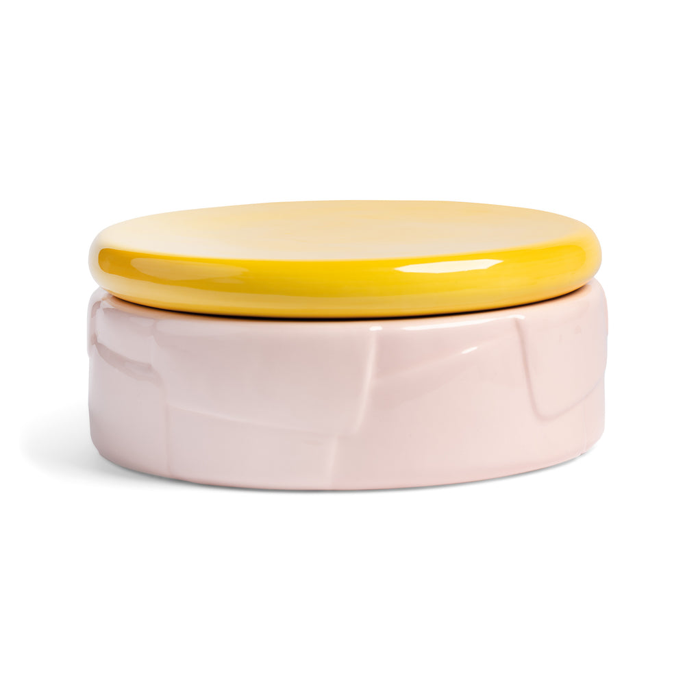 Cut out shapes form a playful pattern on this dolomite jar. The contrasting colour combination and glossy finish create an abstract feeling. The lid with silicone rim keeps the jar airtight so you can store everything nice and fresh.