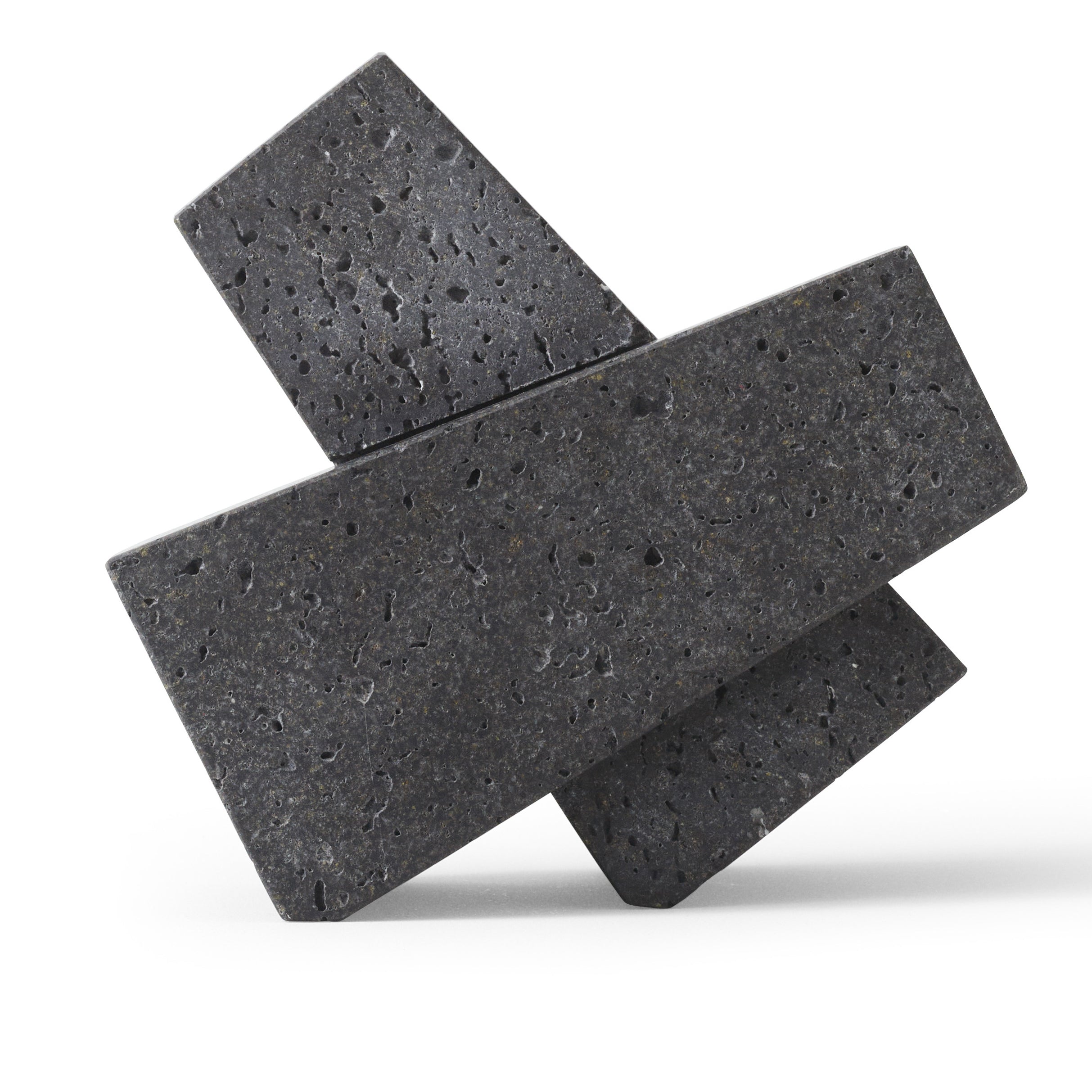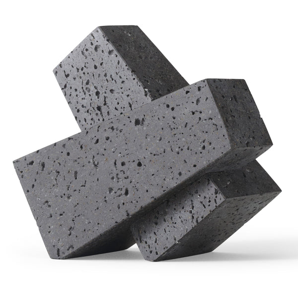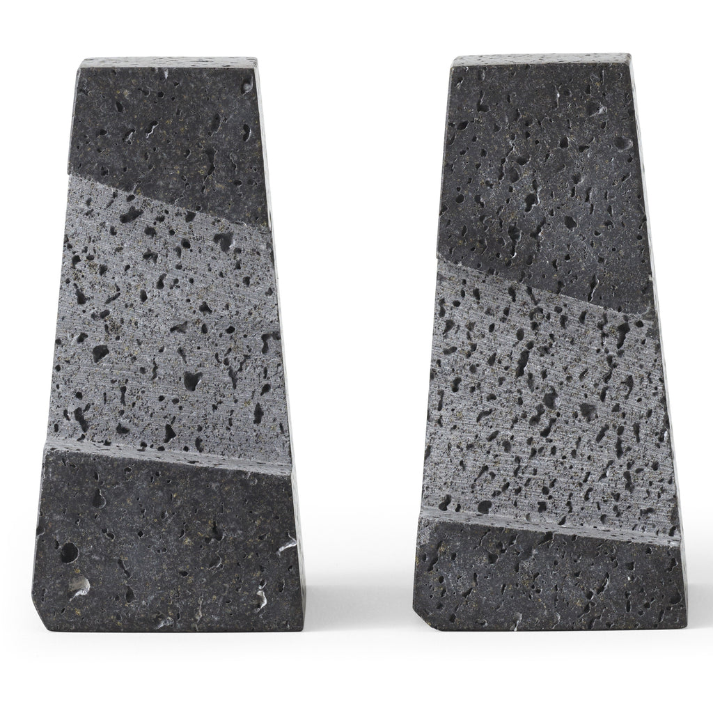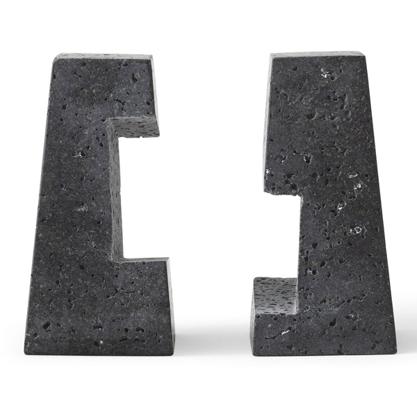 Designed to neatly hold books in place, the abstract forms of the Converge Bookends are shaped from lava stone – a dark and porous material with a textured surface. Use as intended, one at either side of a line of books, or interlock together to create a sculpture that delights with its intriguing shape and touch.