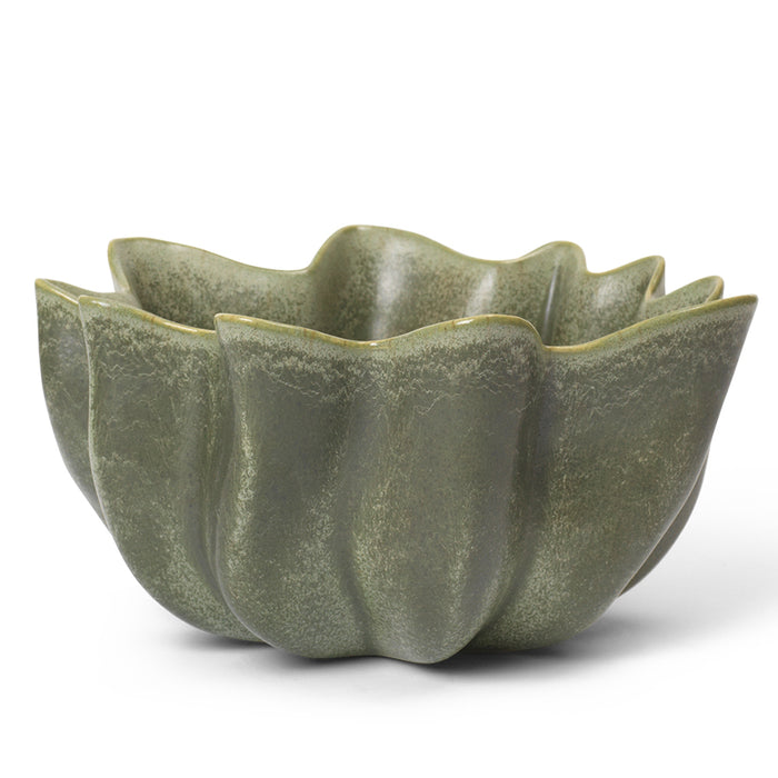 The Nium Bowl takes its design cues from the graceful flow of draped textiles, featuring fluid, elegant folds. The reactive glaze plays with light and shadow, emphasizing the bowl's dynamic curves. Use the Nium bowl as a fruit bowl or serving bowl, or simply display it as a decorative object on its own.