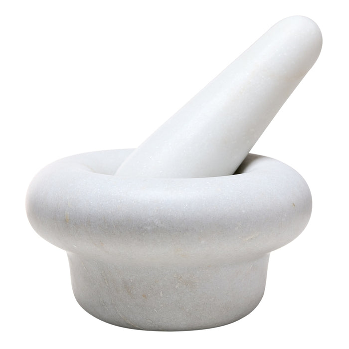 Hours of grinding in our own London restaurant resulted in this weighty block of white Morwad marble to smash pummel and grind spices and herbs. An exaggerated rounded lip allows you a firm grip as you work. Pair with our Stone Spice Grinder.