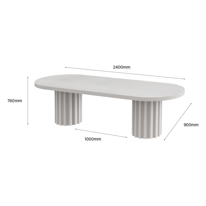 Add visual interest and remarkable character to your outdoor living spaces with the Chantel Dining Table. Flaunting pillar bases with a strikingimpact, the Chantel adds a layer of sophistication to your space. Its sturdy concrete structure and eye-catching statements make this piece perfect for outdoor mealtimes.