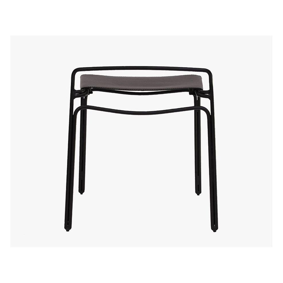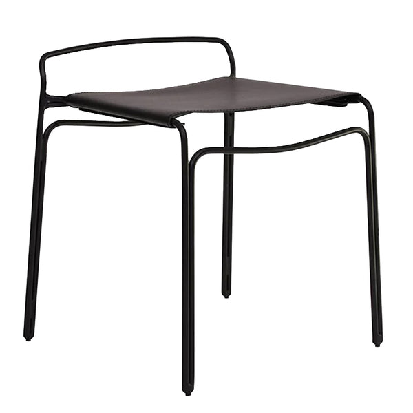 Inspired by a gestural sketch of a stool, the Trace is defined by a continuous, single line of steel wire that supports a stitched leather seat and back panel. Designed to flex and fit to the user, sling seat and back is at once both comfortable and supportive.