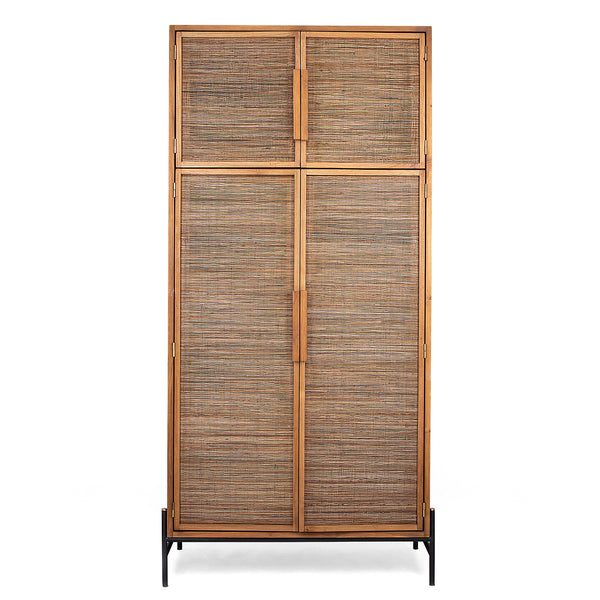 The Coco Wardrobe is an exquisite modern piece of true craftsmanship. With its handmade doors from coconut weaving and a frame of both reclaimed teak wood and iron. The four doors open to reveal four shelves and one inner drawer to keep your stuff organized and also equipped with hangers to keep your clothes tidy.