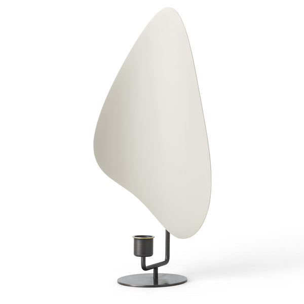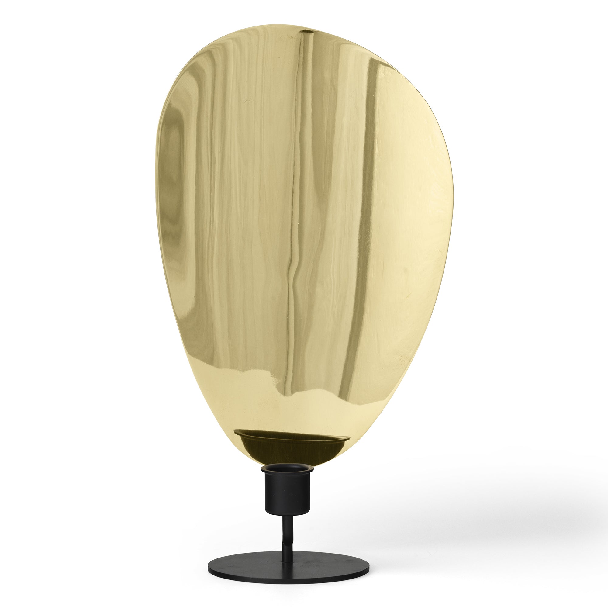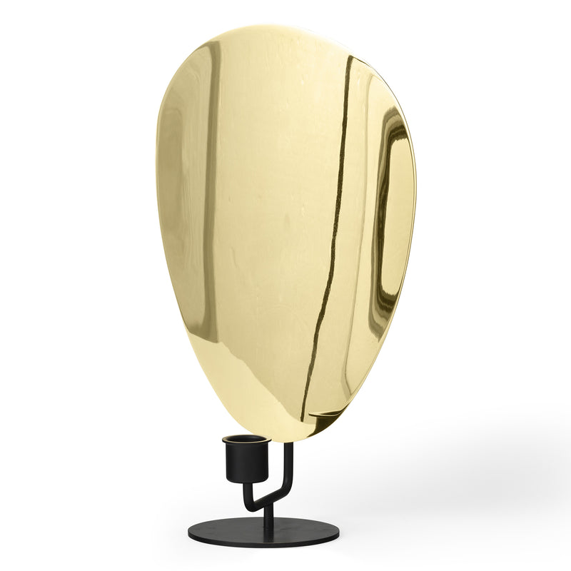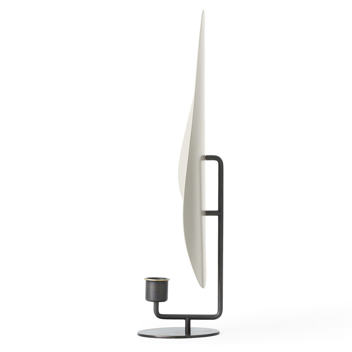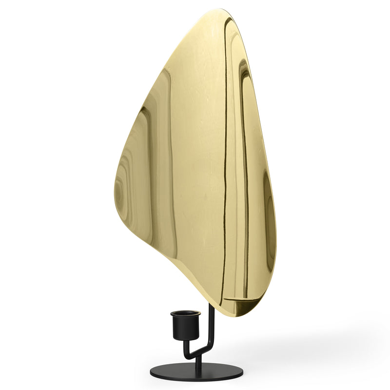 Inspired by French modernist lighting fixtures and designed to resemble a flickering flame, Flambeau is a sculptural design with playful presence. The metal backplate magnifies and reflects candlelight to create intriguing shadows and beautiful ambience.