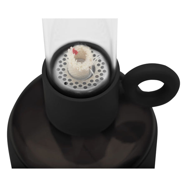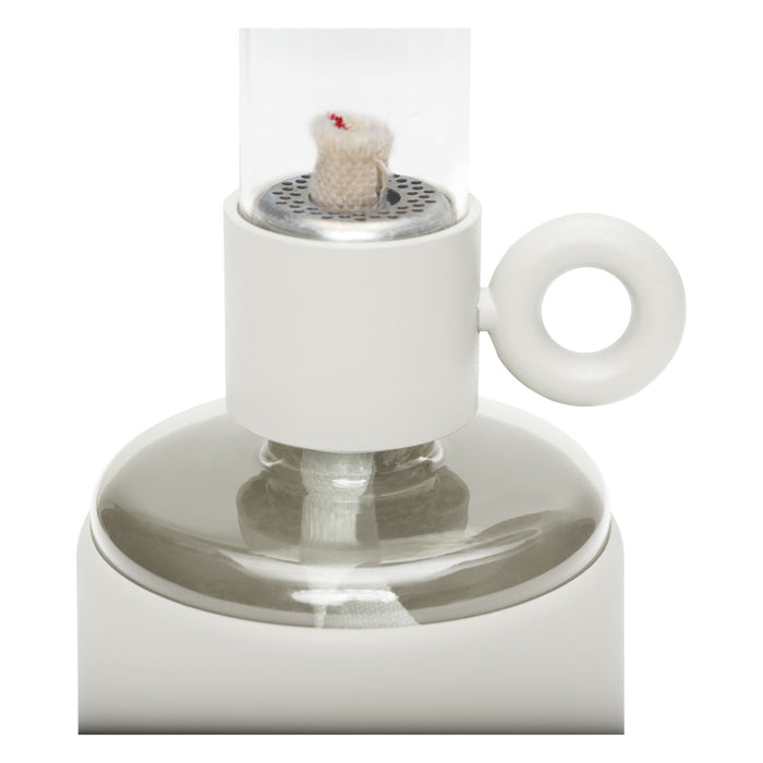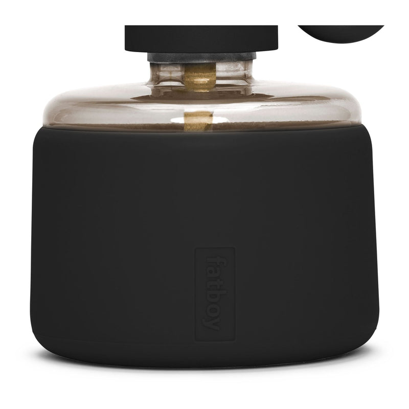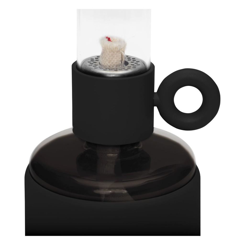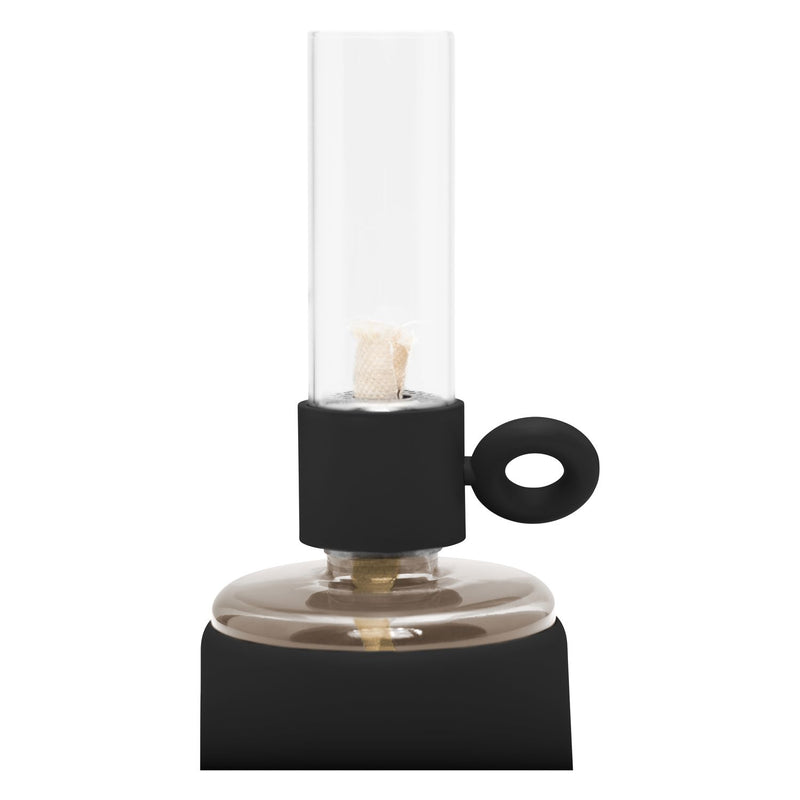 Flamtastique is the oversized lookalike oil lamp for outdoors. His sibling, Flamtastique XS, brings that same campfire ambiance indoors, to your table. We have translated the traditional old oil lamp into a sleek new version. Flamtastique XS is fueled by lamp oil. Thanks to the transparent section of its foot you can always see exactly how much oil is left. And its matte silicone coating makes this glass oil lamp extra strong. To extend a new length of wick, just wind its quirky lug. Endless unforgettable evenings, bring them on.