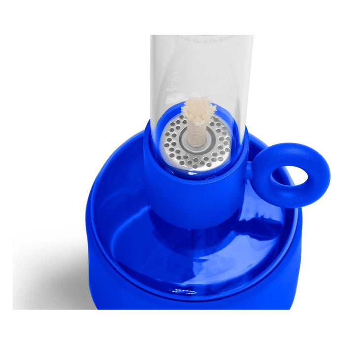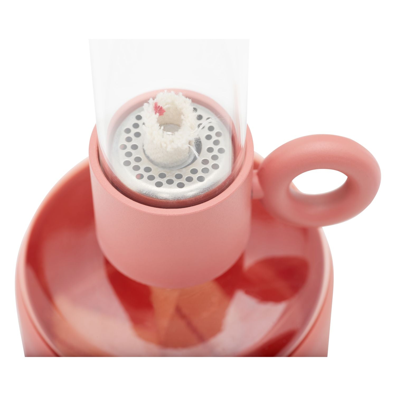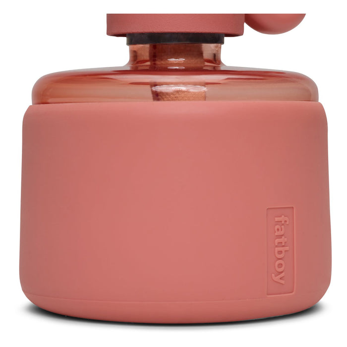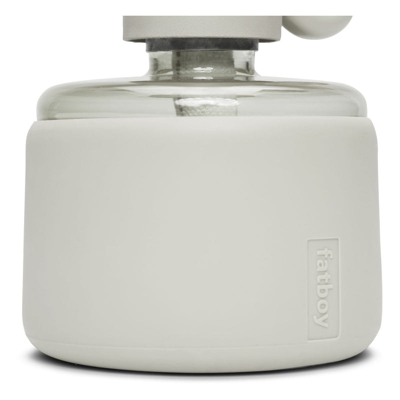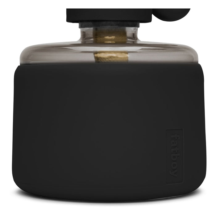 Flamtastique is the oversized lookalike oil lamp for outdoors. His sibling, Flamtastique XS, brings that same campfire ambiance indoors, to your table. We have translated the traditional old oil lamp into a sleek new version. Flamtastique XS is fueled by lamp oil. Thanks to the transparent section of its foot you can always see exactly how much oil is left. And its matte silicone coating makes this glass oil lamp extra strong. To extend a new length of wick, just wind its quirky lug. Endless unforgettable evenings, bring them on.