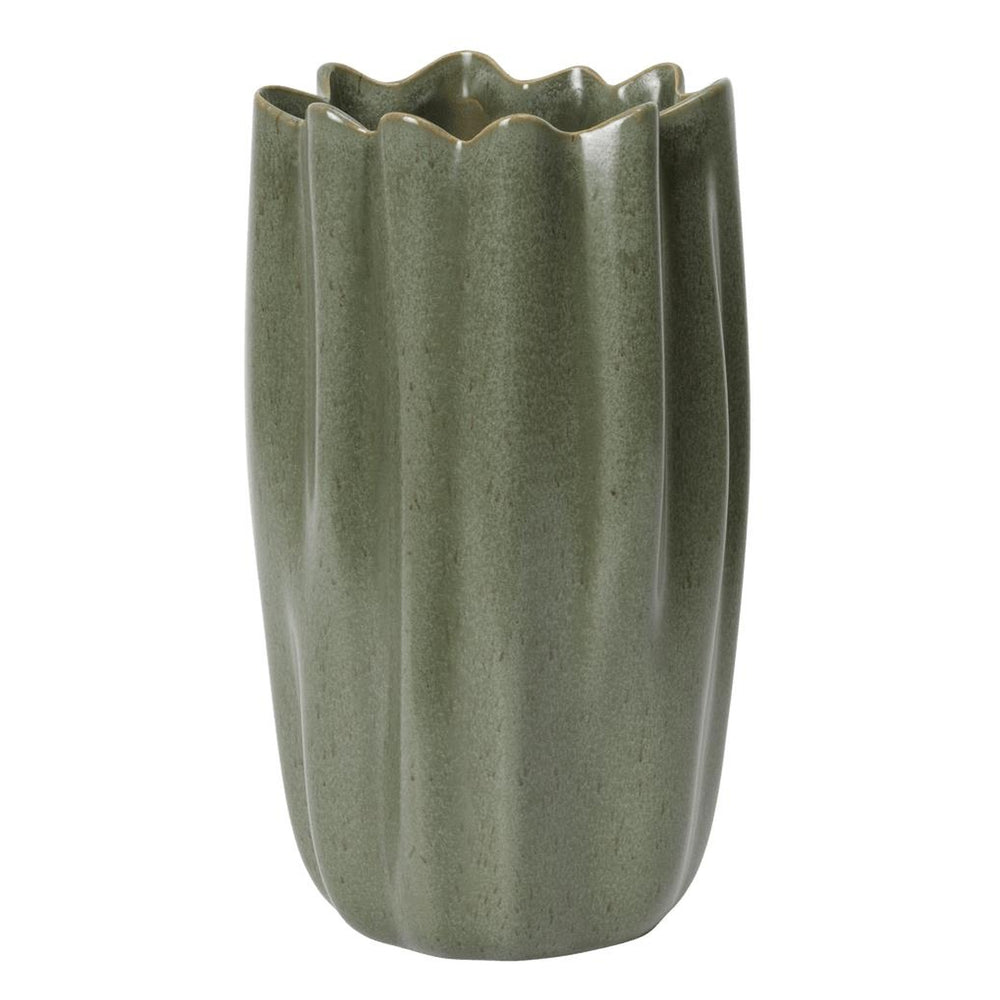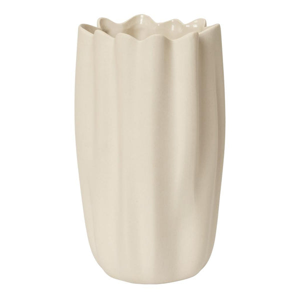 Inspired by the graceful flow of draped textiles, the Nium Vase features soft, sculptural folds. Crafted from stoneware and glazed on the inside for water resistance, it is both functional and decorative. Use it to display flowers or branches, or let it stand on its own as a sculptural object.