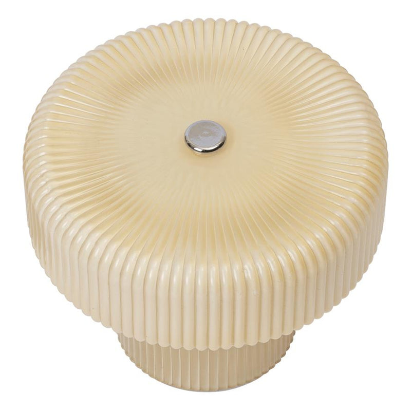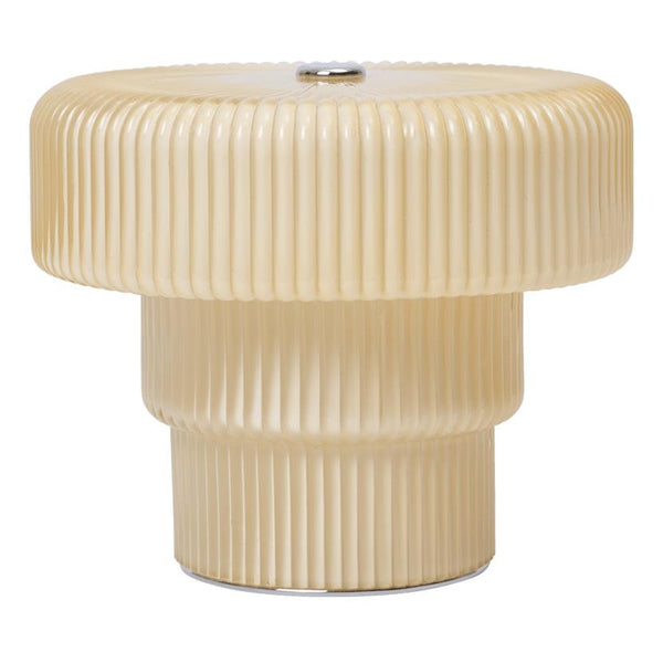 Add a soft glow to your space with the Ripple Portable Lamp. Crafted from mouth-blown glass with a rippled surface and white opal finish, it casts a warm, diffused light. With three brightness levels, the compact design is perfect for intimate evenings or adding ambience to a table setting.