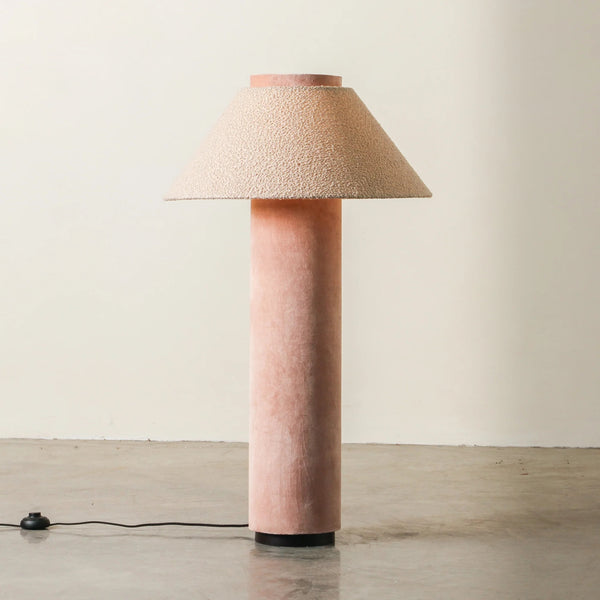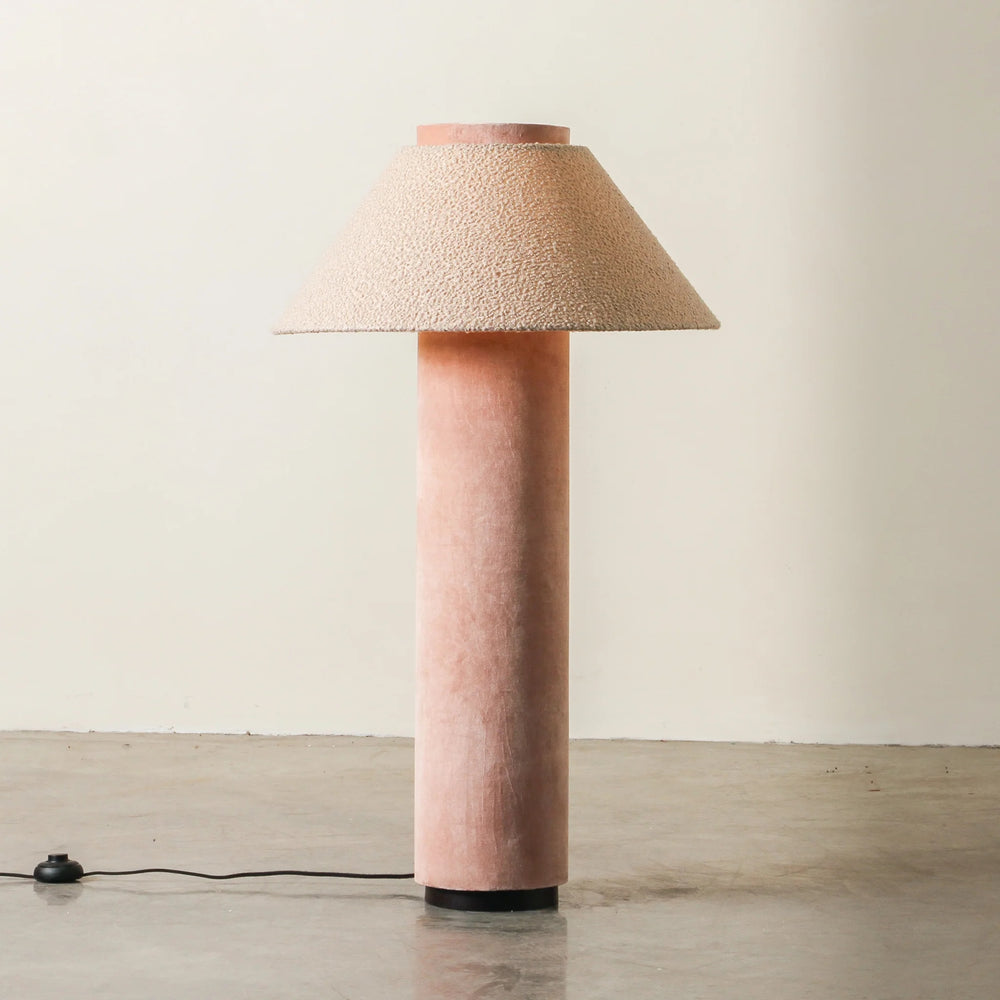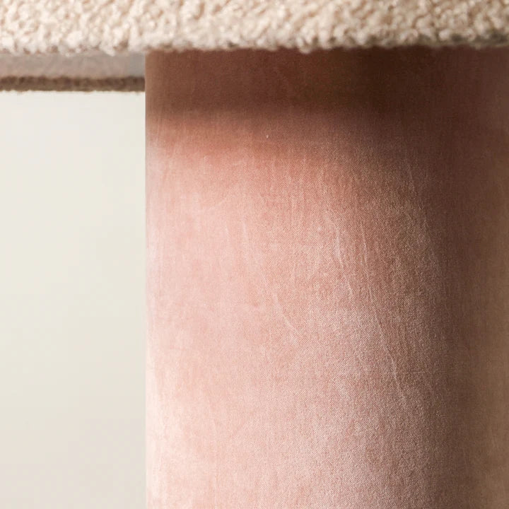 Bold yet serene, the Tressa Floor Lamp is built from contrast. A tall, cylindrical velvet base—available in Forest Green or Rose Dust—is paired with a tapered, boucle-textured shade in warm beige. The base offers rich, saturated colour and grounding weight, while the shade softens the silhouette with a tactile, organic edge. This piece embodies the vision of Tender Forms—functional design that behaves like sculpture. Tressa serves not just as lighting, but as a visual pillar within the room. Best positioned in corners, beside sofas or armchairs where height is needed. Style with low, textural furniture, and neutral materials like velvet, oak, or ceramic to allow the lamp’s form to anchor the space with intention.