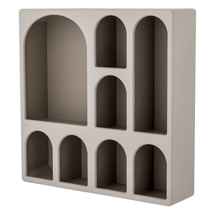 The Graphia Bookcase by Bloomingville is made of brown lacquered MDF and has a decorative design with both small and large compartments. The bookcase is ideal for displaying books, figurines or small trinkets. A stylish element in modern interior design.