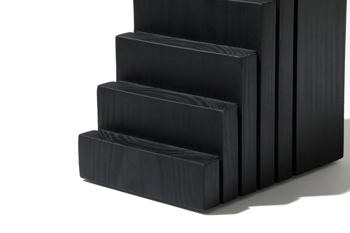 Made using inspiration from a series of city towers. Side table from a single block of FSC New Zealand pine. Flaunting a charismatic timber finish combined with its towering design, this piece offers a contemporary charm to your bespoke interiors.