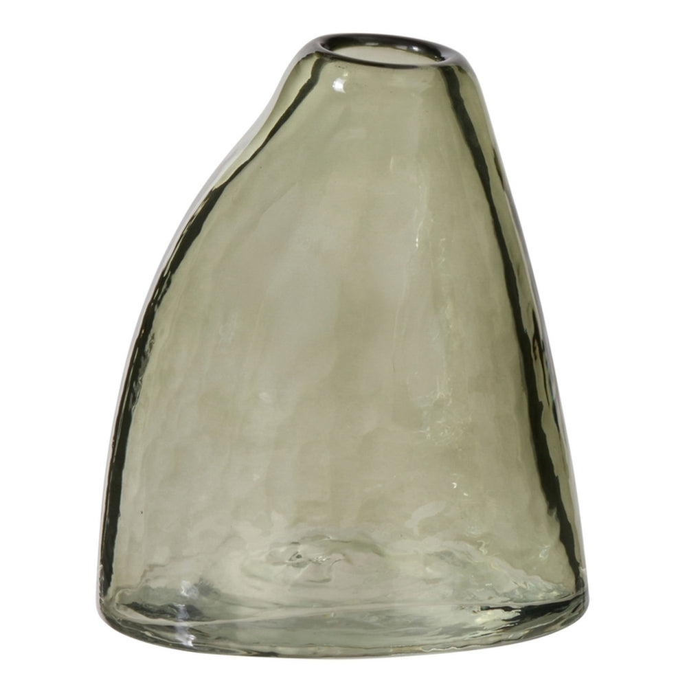 The Aila Vase brings an artistic flair to any vessel collection. Made with jade green glass, it features an abstract shape that narrows to the neck, making a beautiful choice to hold stems and smaller arrangements.