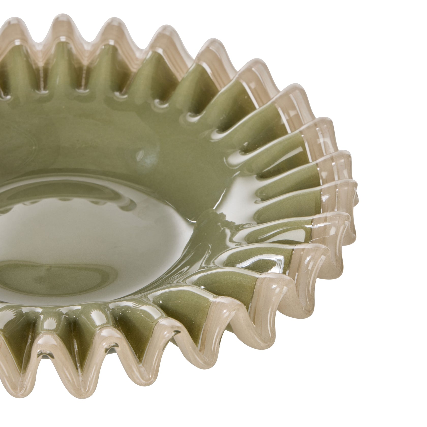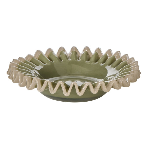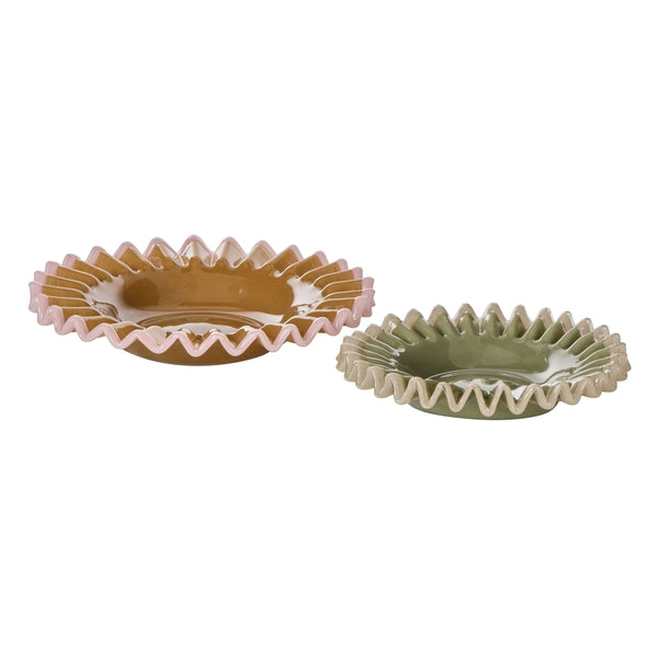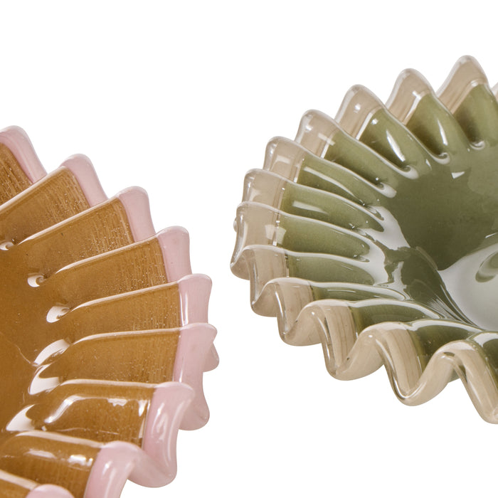 When they zig, you zag. Get playful with the Sigra Frill Dish. Made using intricate hand-blown techniques, this trinket dish boasts a glossy glass construction and a frilled rim for added character. Available in different shades and sizes, collect them both and style them together for added impact