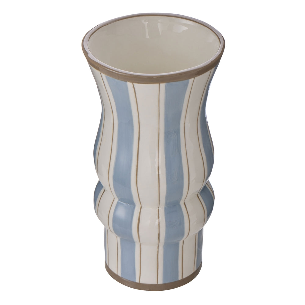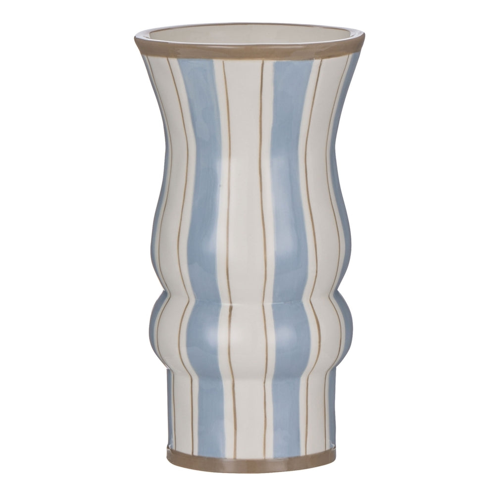The Thoa Vase gives every vessel collection a touch of French Provincial charm with a palette of pale blue, muted brown and ivory. The hand-painted stripe design gives that touch of extra detail, while the curved silhouette gives an elegant look.