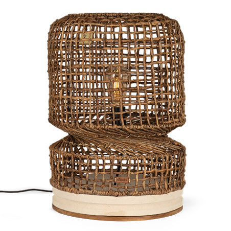 Twister Table Lampshades are a freestanding table lamp fashioned in a ‘fish trap’ design using a metal framework and wrapped in Abaca bark to create a rustic and pleasing weave appearance, the lamps are stylish “twist detailing" and sat upon a solid, hand turned sand stone base, providing both stability and safety.