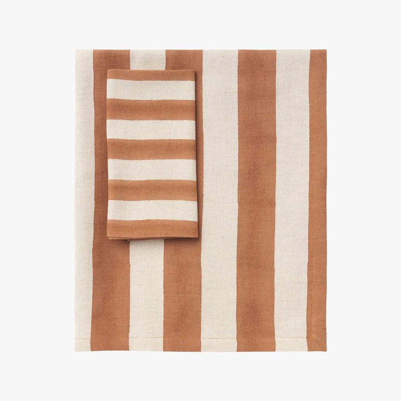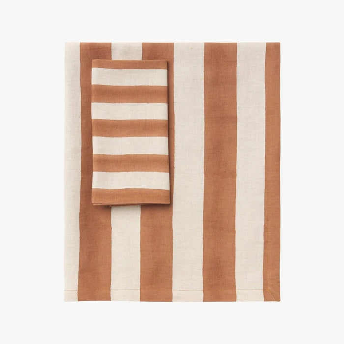 Infuse your home with Mediterranean flair, the Riviera collection combines a linen/cotton blend with a bold stripe pattern. Hand-block printed in Jaipur, each piece in this collection is a testament to craftsmanship and design, meticulously handcrafted by highly skilled artisans. Ideal for everyday dining or stylish entertaining, Riviera is available in Jade and Terracotta.